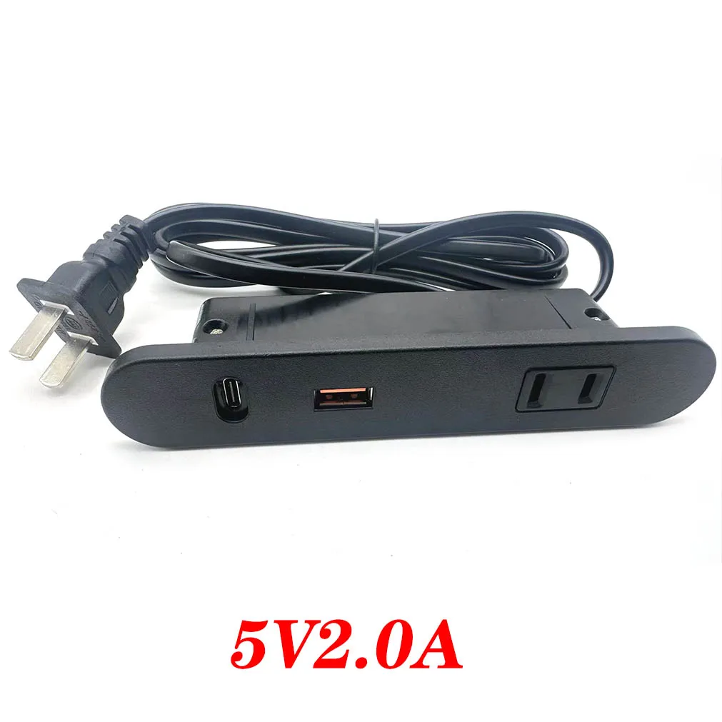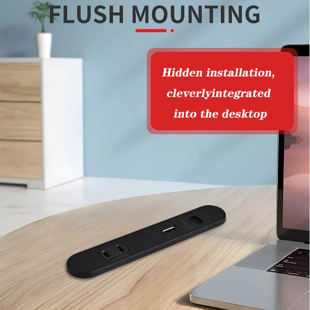 Enchufes de corriente ocultos para mesa, 1 salida USB, 1 USB, 1 tipo c, alimentación integrada, mesita de noche, fila de escritorio de oficina, 5A, 110V, 220V, enchufe negro