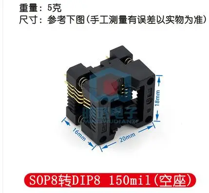SOP8/SOP16 a DIP8 SA602 Enchufes de prueba IC chapados en oro Enchufes quemados 150/200mil