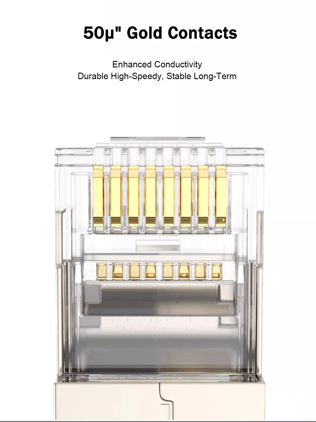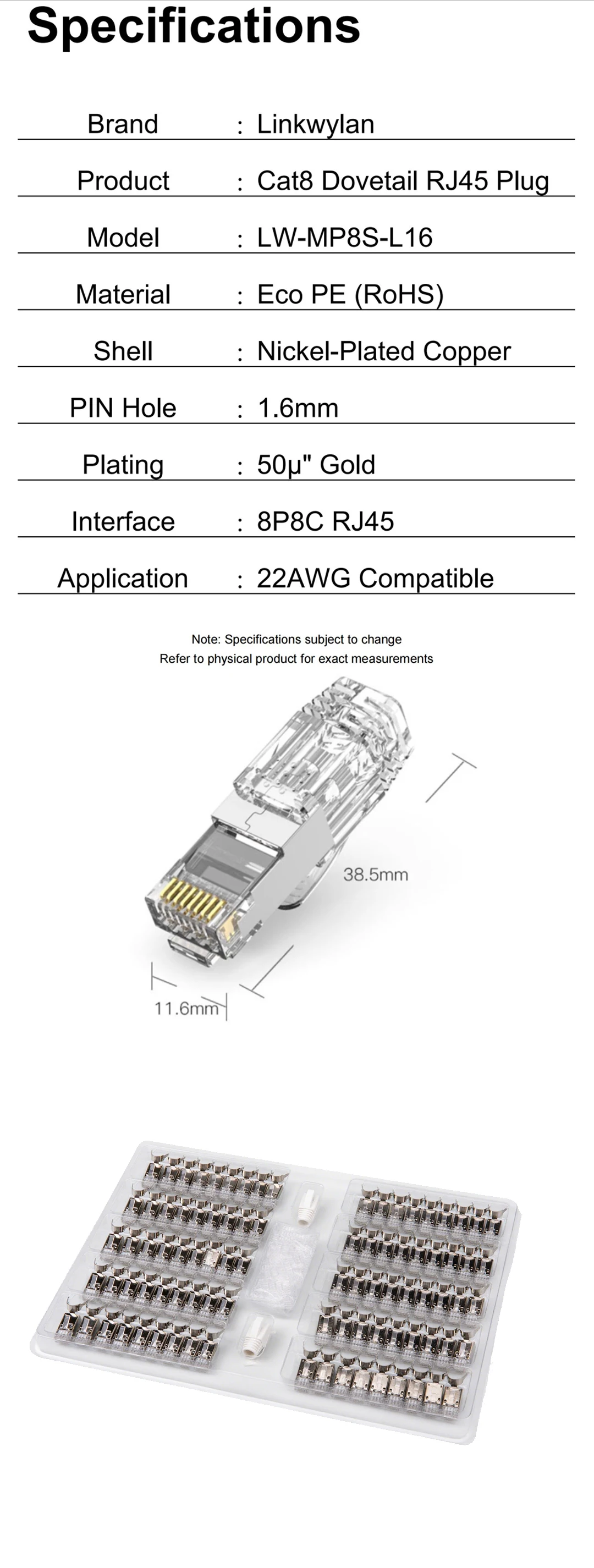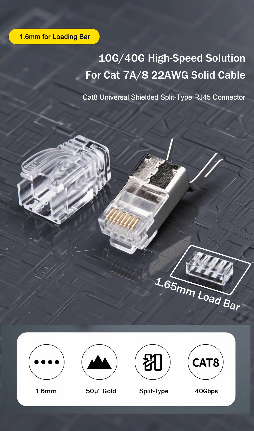 Enchufes de red Linkwylan Cat8 (enchufe RJ45 + barra de carga + arranque) Conector modular de paso STP orificios de 1,6 mm para cables trenzados sólidos