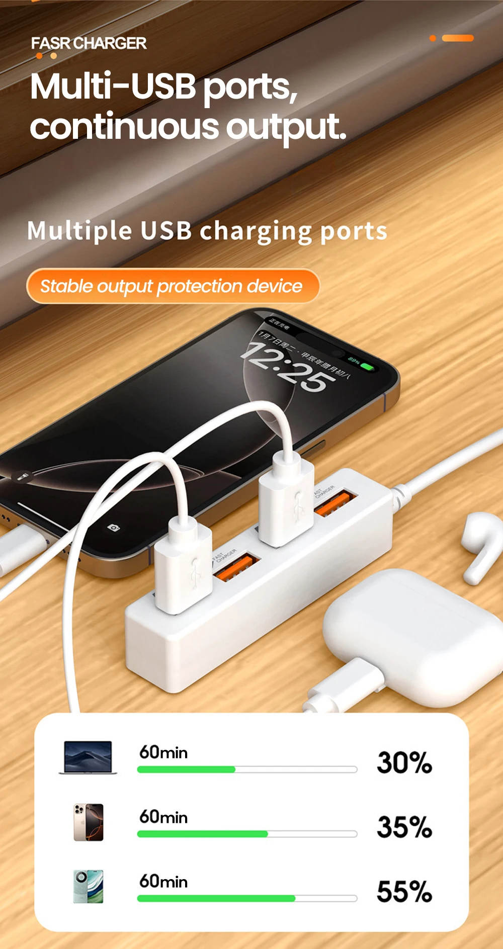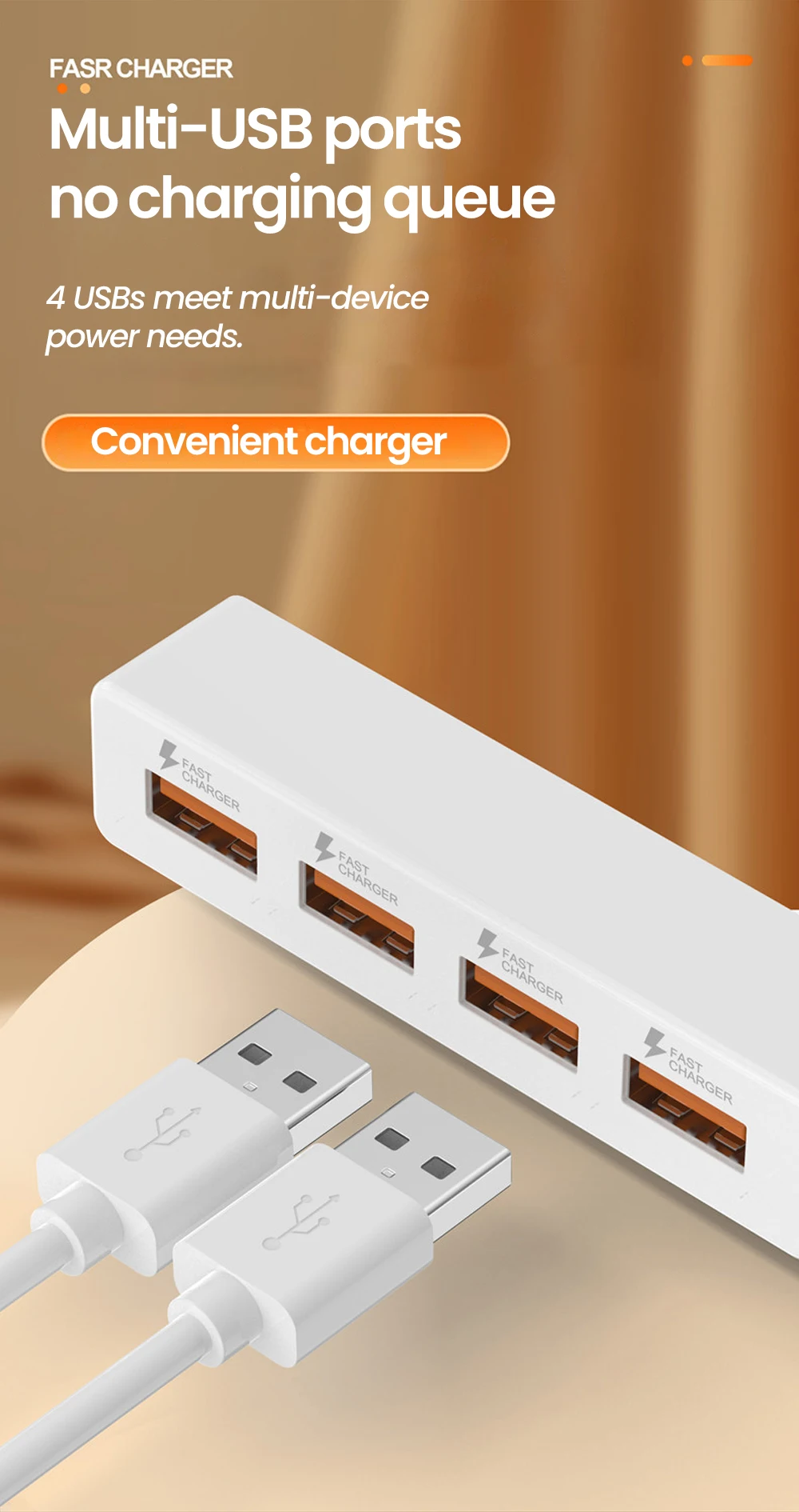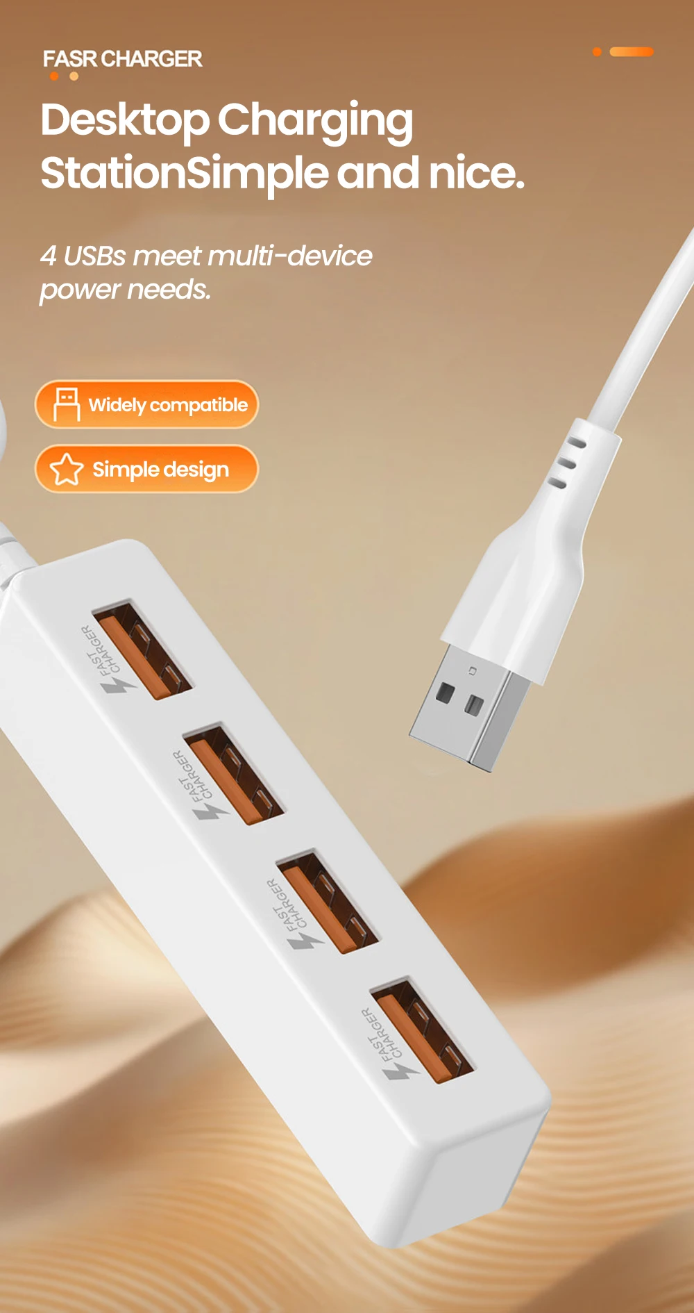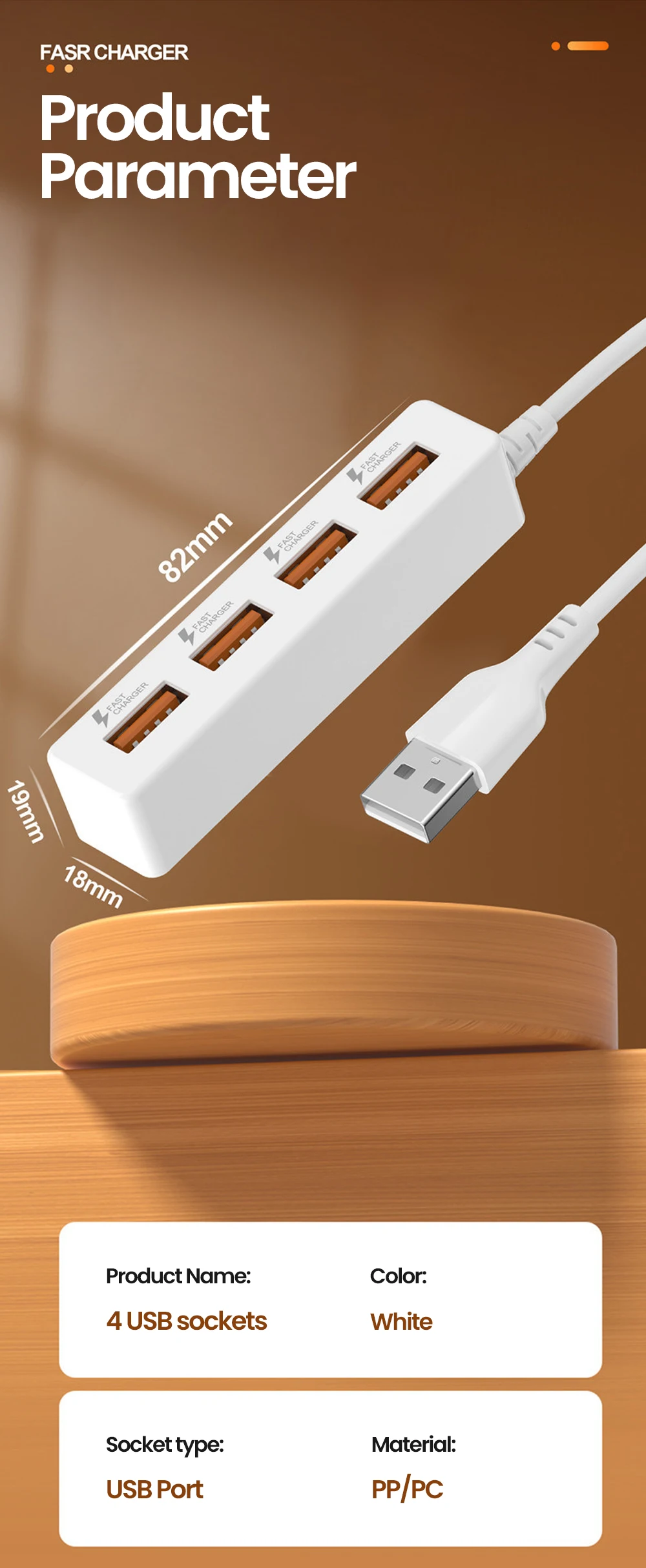 Enchufes USB de 4 puertos, concentrador USB de carga de escritorio, divisor USB, concentrador de alta velocidad, convertidor divisor USB 2,0 para accesorios de ordenador PC