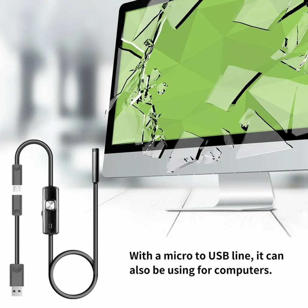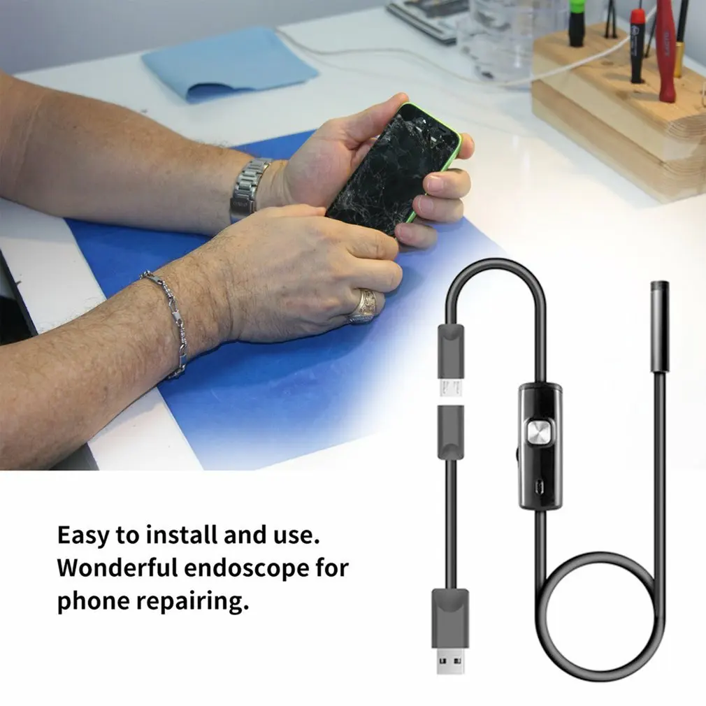 Comprar Endoscopio de 1M y 7mm para teléfono, endoscopio Industrial regulable para reparación de automóviles, medidor impermeable, Combo de ordenador