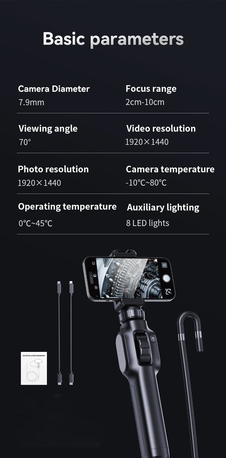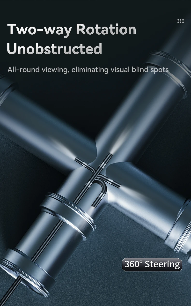 【FUNDA ARTICULADA DE DOS VÍAS】- 360 direcciones bidireccionales° La sonda de boroscopio articulada permite 360° Observación de vista panorámica para más detalles de inspección.Sensor CMOS de 2,0 megapíxeles adoptado, la cámara endoscópica WIFI puede grabar videos muy claros y en tiempo real para ayudarlo a encontrar el problema.