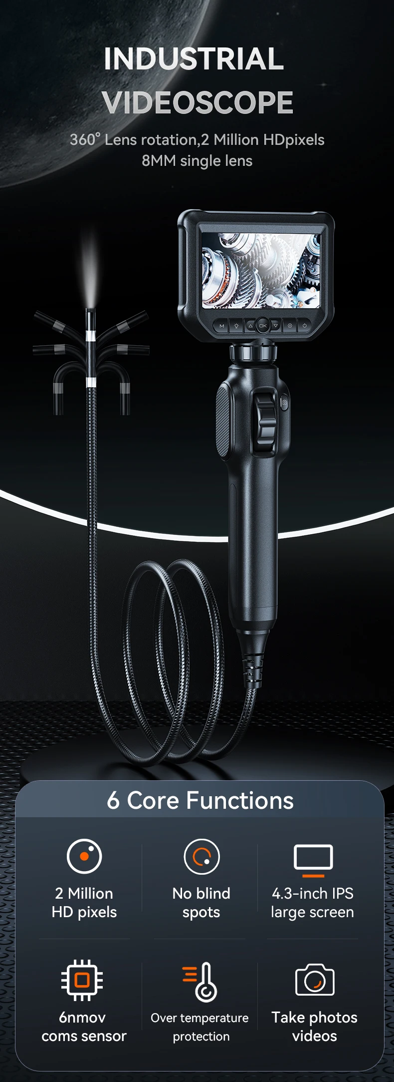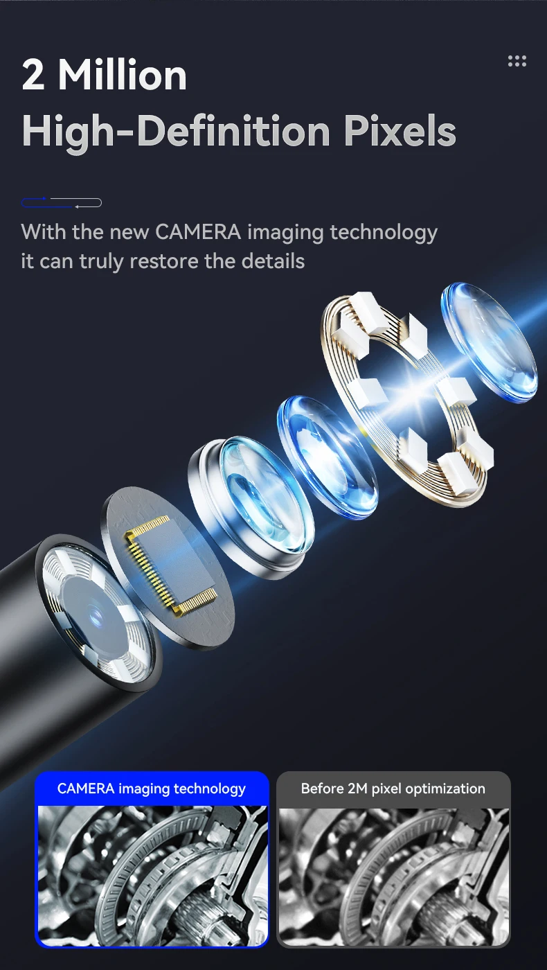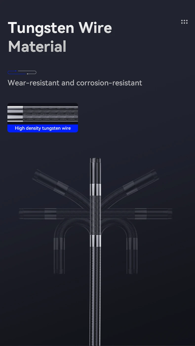 【La GRAN ELECCIÓN DE REGALO para COCHE】--Este boroscopio articulado automotriz se utiliza principalmente para la reparación de automóviles, la inspección del depósito de carbón interno del motor del automóvil, el mantenimiento posterior de cajas de cambios, marcos, compresores, tuberías de aceite y diversas piezas fundidas.Cuando su automóvil tiene problemas, este boroscopio puede ayudarlo a encontrar rápidamente el problema y tomar el juicio correcto, lo que le ahorrará mucho tiempo y costos.