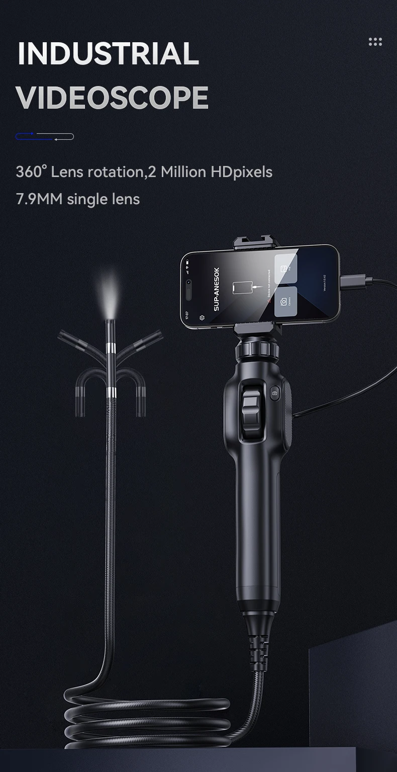 Este boroscopio articulado es un producto importante para el mercado de repuestos de automóviles global.Se utiliza especialmente para detectar espacios de curvatura estrechos que son difíciles de ingresar, como evaporadores de automóviles, cámaras de combustión y sensores catalíticos de tres vías.Equipado con una sonda de dirección 360 bidireccional.Puede observar fácilmente todos los ángulos dentro de la máquina.Ideal para talleres de reparación de automóviles y entusiastas de los automóviles.