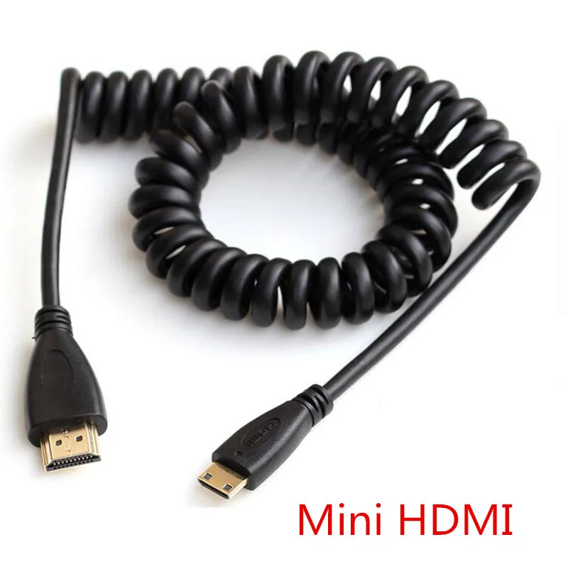 HDMI de alta velocidad a Mini HDMI Spring Curl Cable V1.4 3D para videocámaras Sony Canon