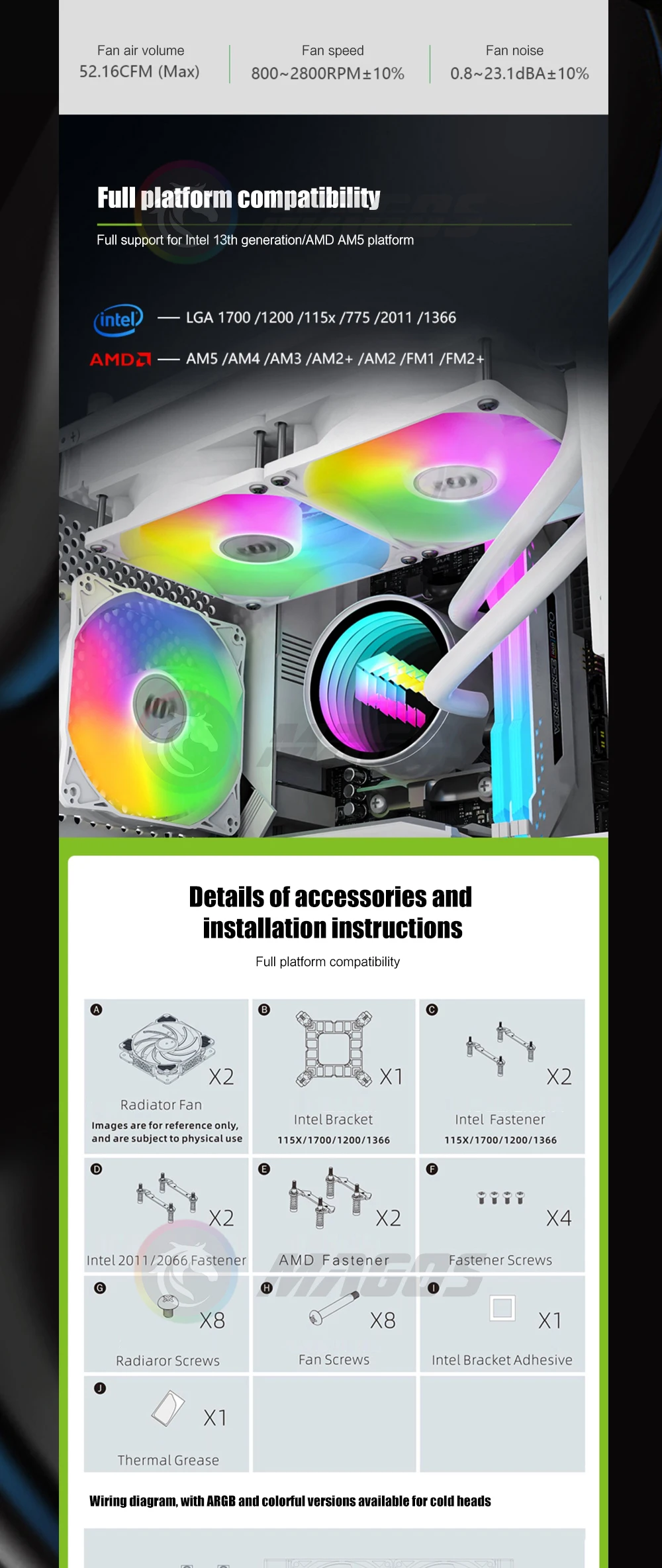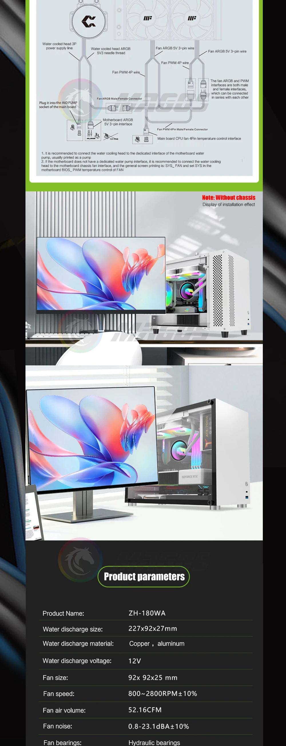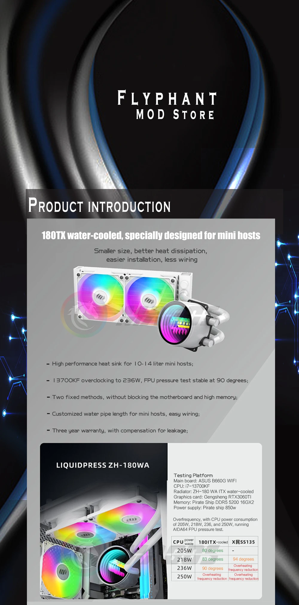 Comprar Enfriador de agua de CPU 180 para gabinete de jugador ITX, compatible con AM4 AM5 1200 1700 236W TDP, enfriador de agua líquido de alto rendimiento