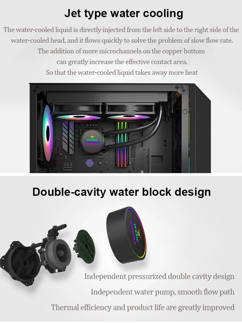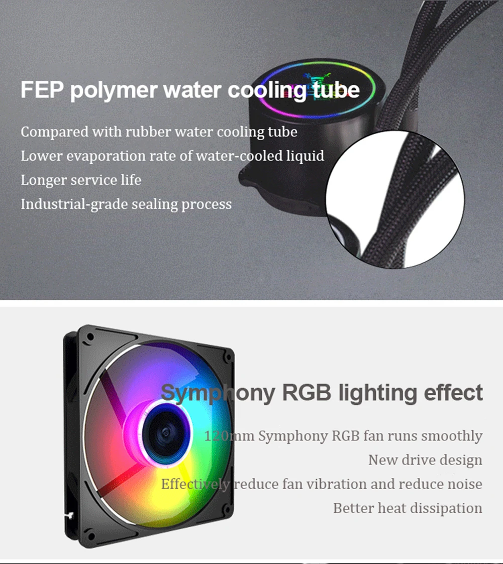 2. Refrigeración por agua integrada, sin mantenimiento, ya hay un líquido de enfriamiento dentro del producto, no es necesario agregar agua ni líquido frío de por vida.