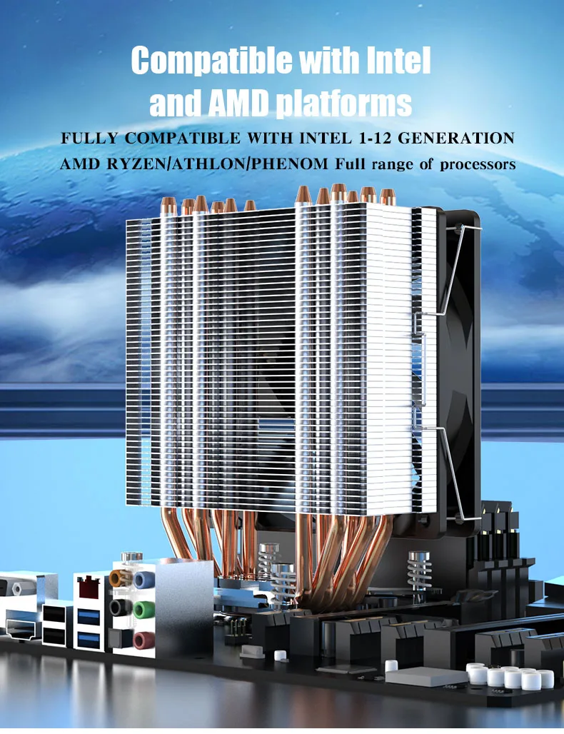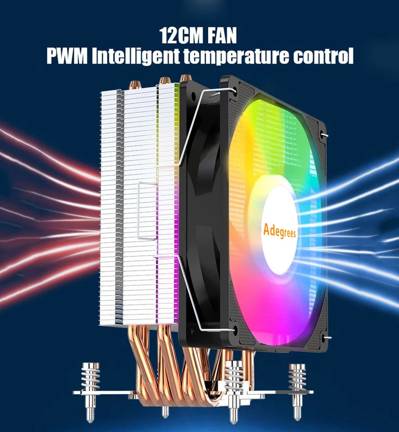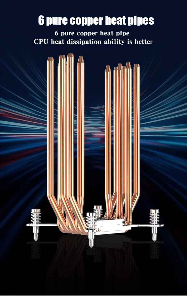 Enfriador de aire de CPU de 120MM, Ventilador ARGB de 4 pines, 6 tubos de calor, radiador de PC para Intel LGA 115X 1700 1200 2011 X99 X79 1366 AMD AM4 AM5