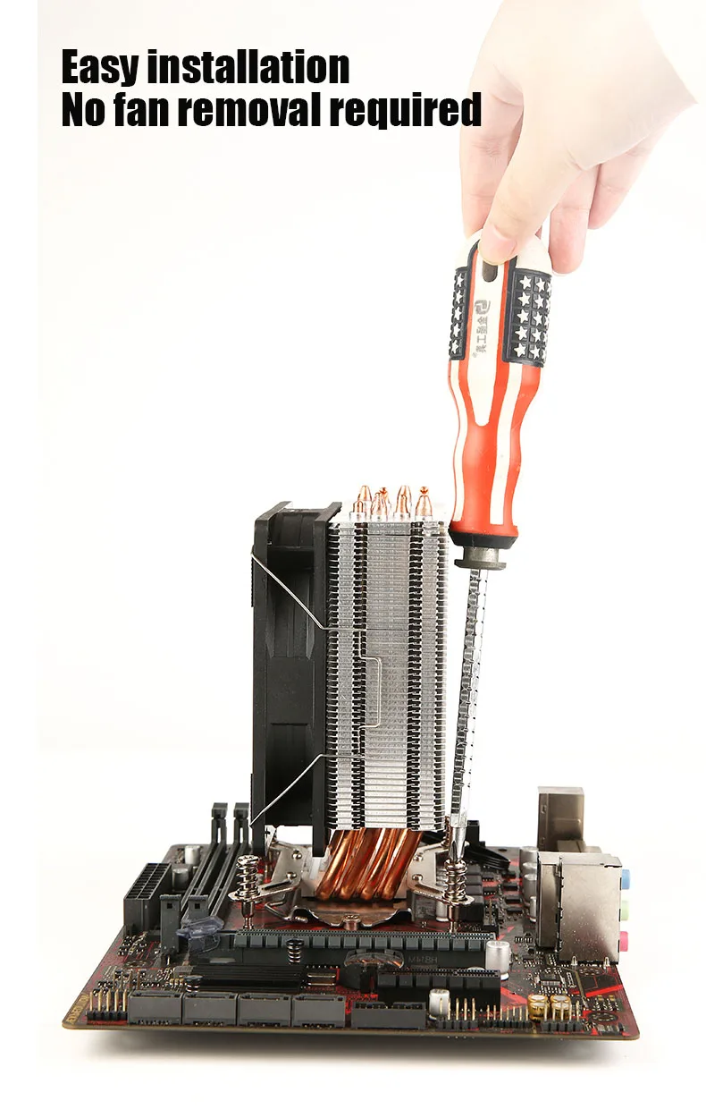 --Para AMD:AM4/AM5 (Para AMD, debe mantener el soporte original en su placa base y simplemente abrochar el refrigerador, estará bien)