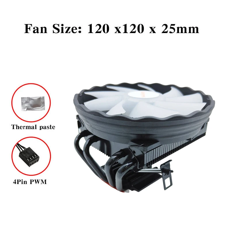 Enfriador de aire de CPU de 120MM, ventilador de radiador de PC sin luz PWM de 4 pines para Intel 2011 X79 X99 1700 1366 115X 1200 Ventilador