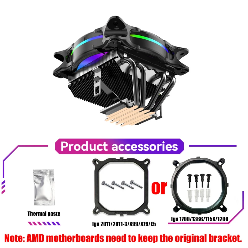 --Para AMD:AM5/AM2+/AM2/AM3+/AM3//AM4/FM1/FM2 (Para AMD debe mantener el soporte original en su placa base y simplemente abrochar el refrigerador estará bien)