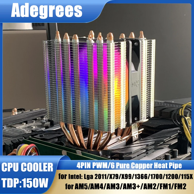Refrigerador de aire para CPU X99, 6 tubos de calor, procesador de PC, ventilador de refrigeración RGB para Intel LGA 1700 1200 1150 1151 1155 2011 X79 1366 AMD AM5 AM4 AM3