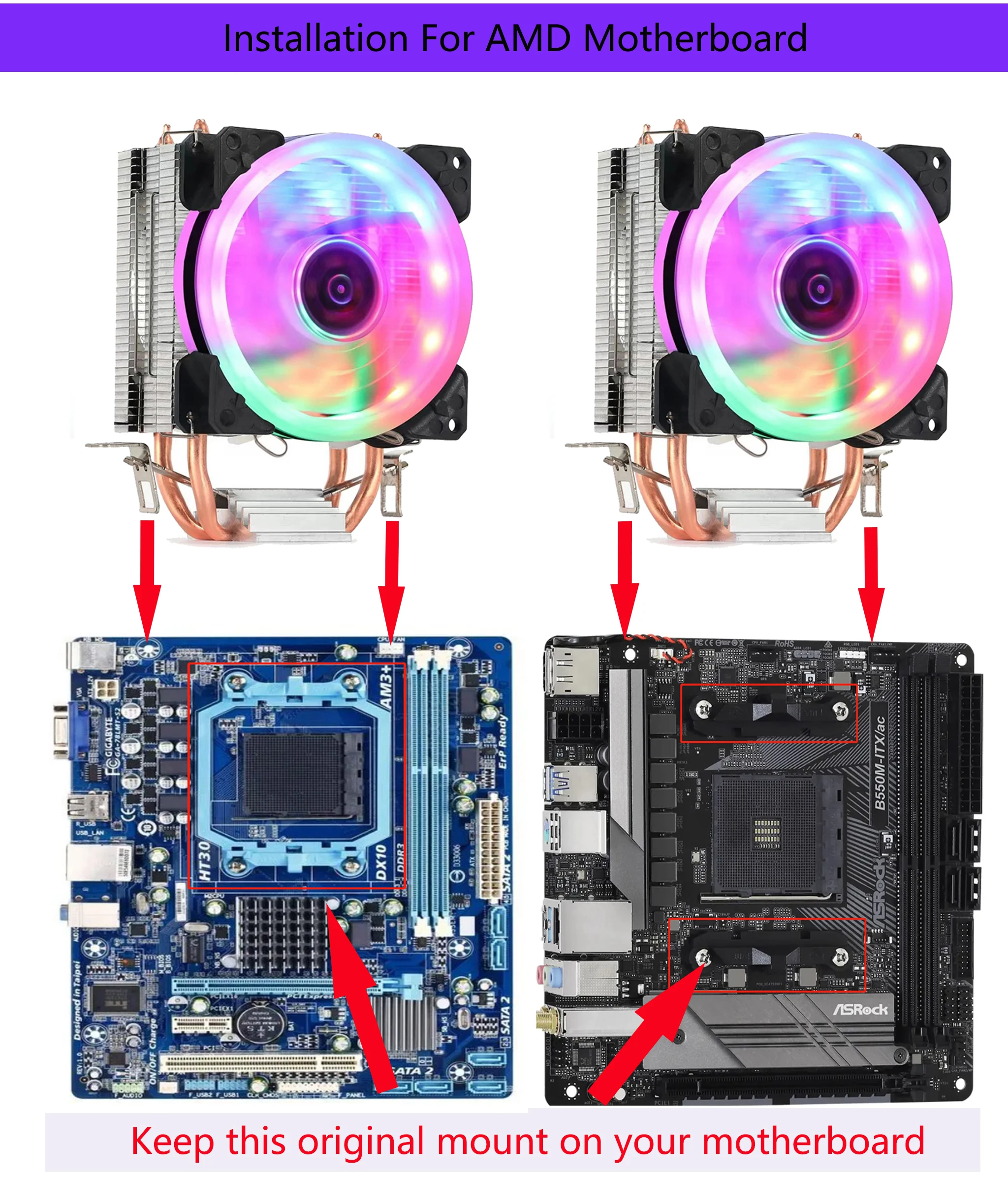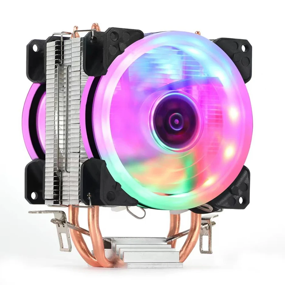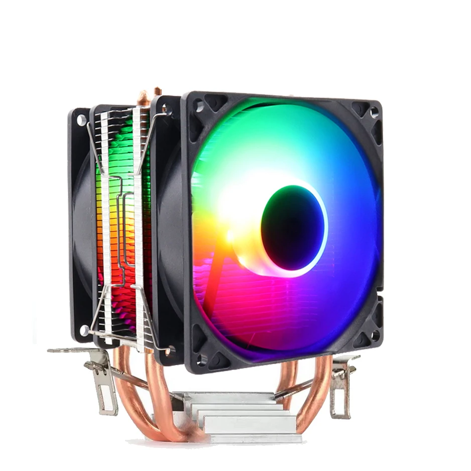 Comprar Enfriador de CPU con 2 tubos de calor, ventilador RGB de 3 pines para Intel LGA 1150, 1151, 1155, 1700, 775, AMD FM2, AM3, AM4, AM5Quiet, radiador silencioso