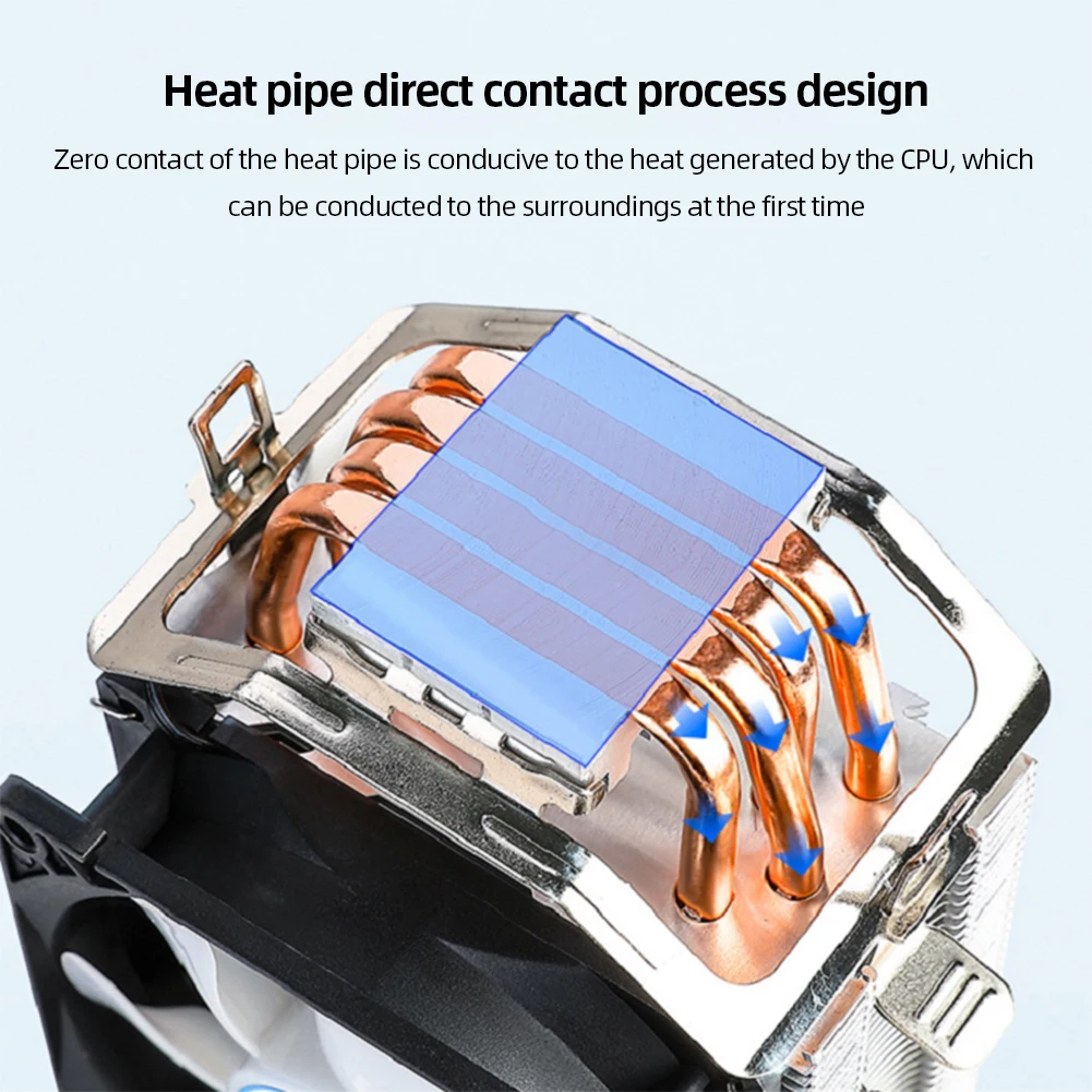 1. Conductividad térmica mejorada:Equipado con 4 tubos de calor de cobre puro, este enfriador de CPU tiene una conductividad térmica más rápida y una mayor eficiencia en la disipación de calor.