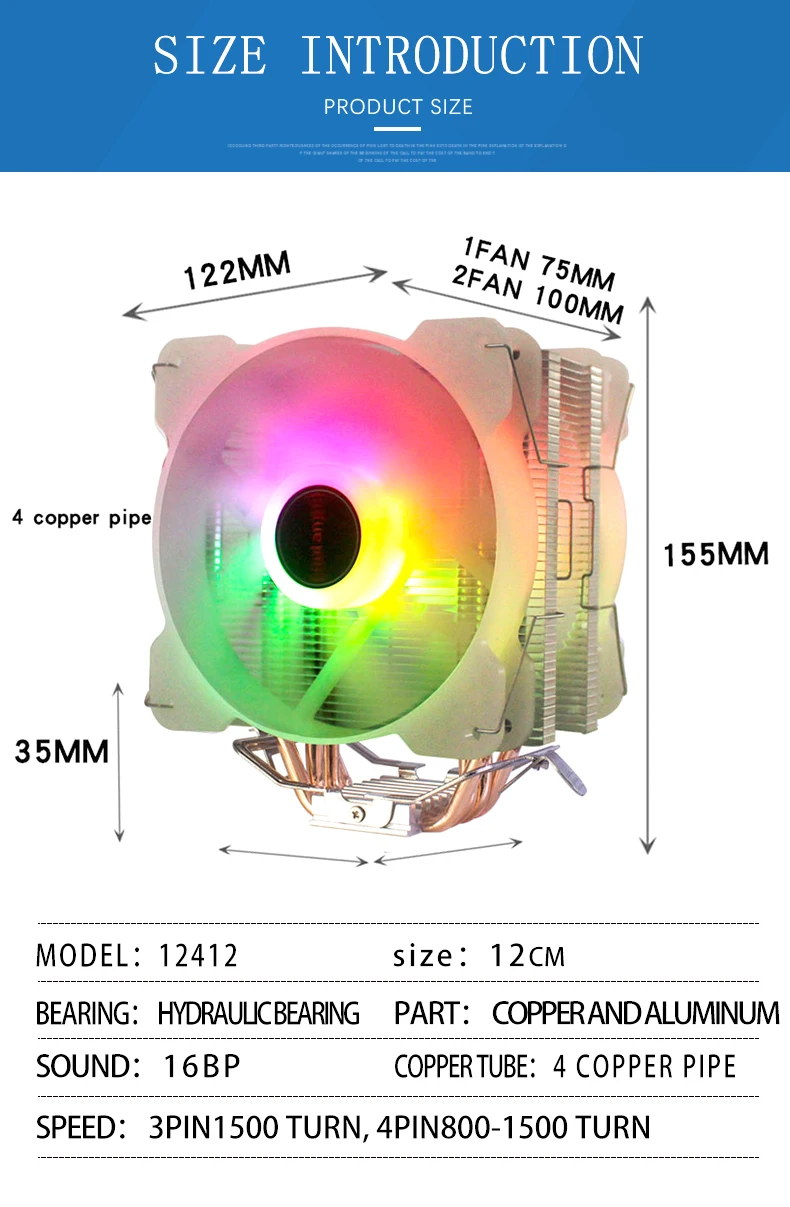 Comprar Enfriador de CPU de cobre puro, 4 tubos de calor, sistema de refrigeración de torre de congelación LGA 1150, 1155, 1200, 1356, 1366, X79, X99, 2011, AMD3, AM4