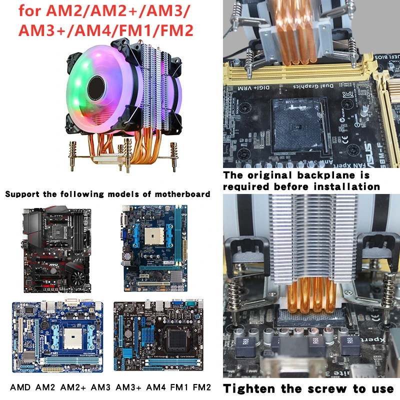 C:(Tornillo AMD) Compatible con AMD AM2 AM2 + AM3 AM3 + AM4 FM1 FM2 (Utilice el enchufe original de la placa base para instalar el radiador.