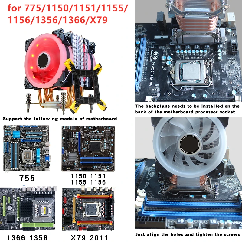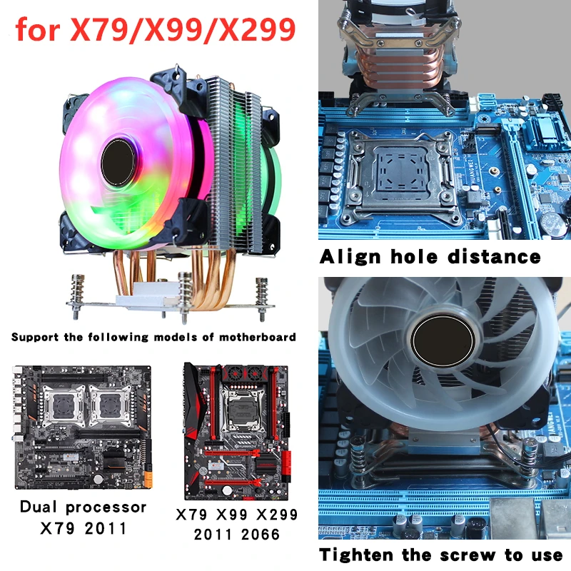 Comprar Enfriador de CPU LED RGB de 12cm, radiador de disipador térmico de 4 tubos de calor de 12V con ventilador de refrigeración para LGA 775, 115X, 1366, X79, X99, 2011, AMD, AM3, AM4