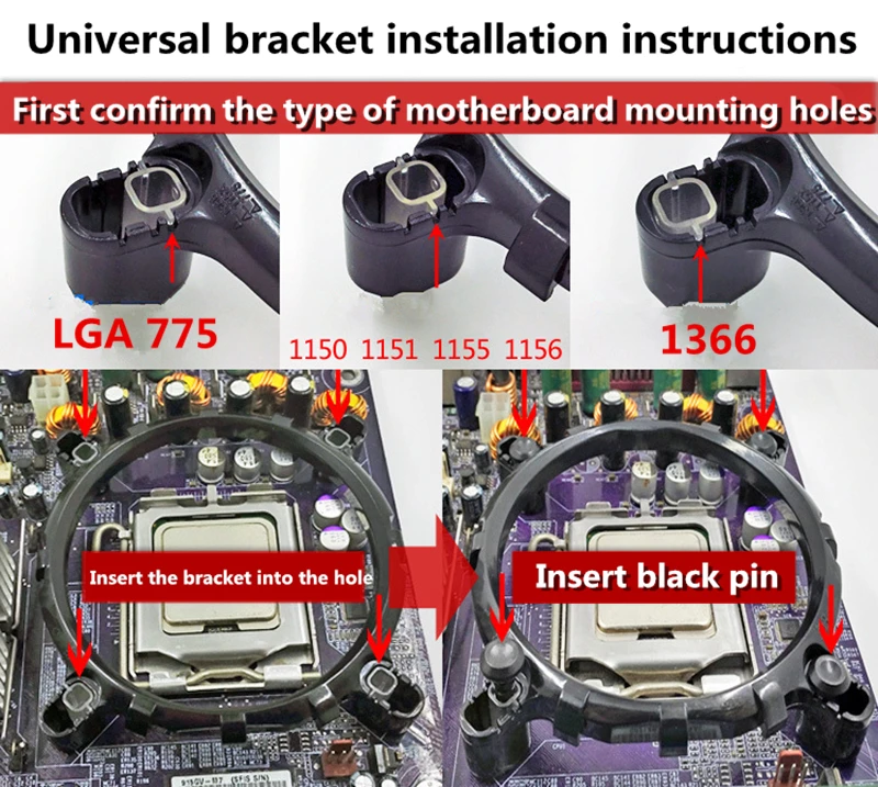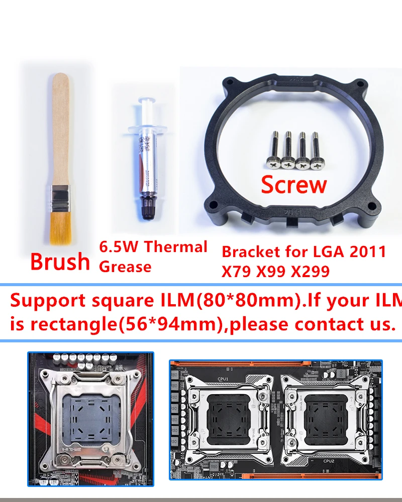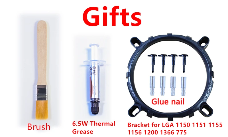 1x soporte para LGA 1150 1151 1155 1156 775 1366/para X79 X99 2011 (placa base AMD utiliza el enchufe original de la placa base para instalar el radiador).