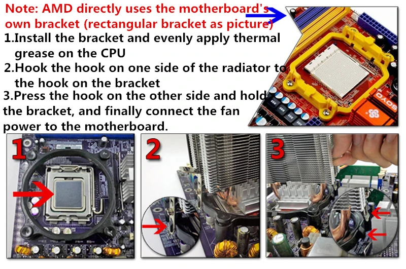Placa base AM4 / AM3 / AM2 / AMD. Utiliza el enchufe original de la placa base para instalar el radiador.