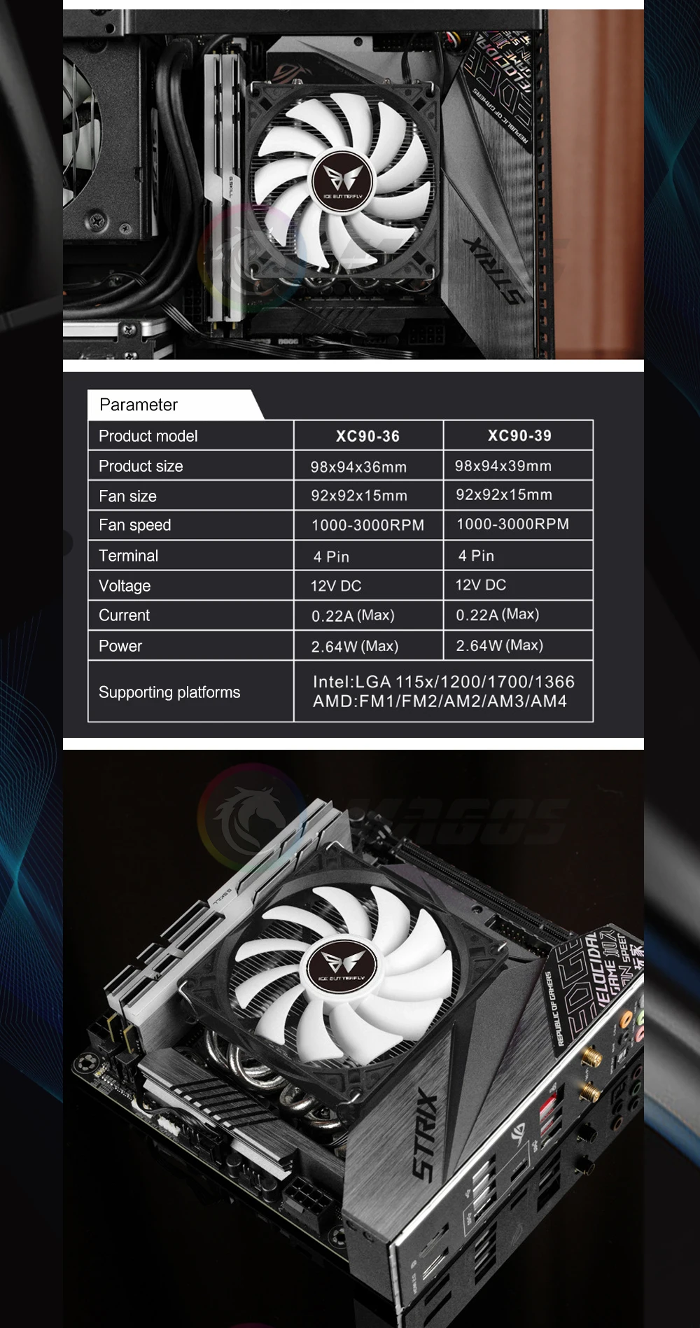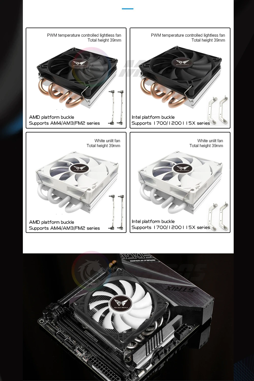 Enfriador de CPU para Mini ITX, carcasa ultradelgada Z39, 4 tubos de calor, radiador de CPU, soporte AMD/Intel, ventilador de refrigeración de aire para PC, 4 pines, PWM