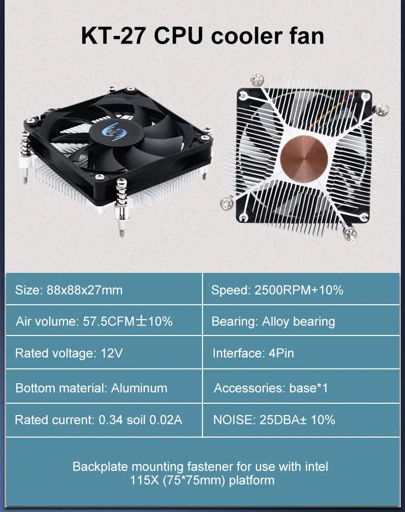 Intel CPU i3 i5 LGA 1150/1151/1155/1200 ventilador de refrigeración con núcleo de cobre de perfil bajo 1U 65W PWM