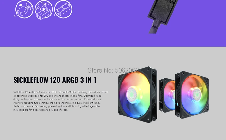 Comprar Enfriador Master hockleflow 120 3 en 1, ventilador de carcasa de ordenador de 120mm, 5V, 3 pines, ARGB, silencioso, ventilador de refrigeración de CPU con controlador