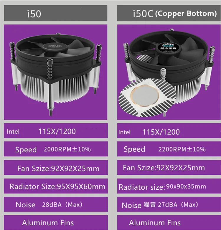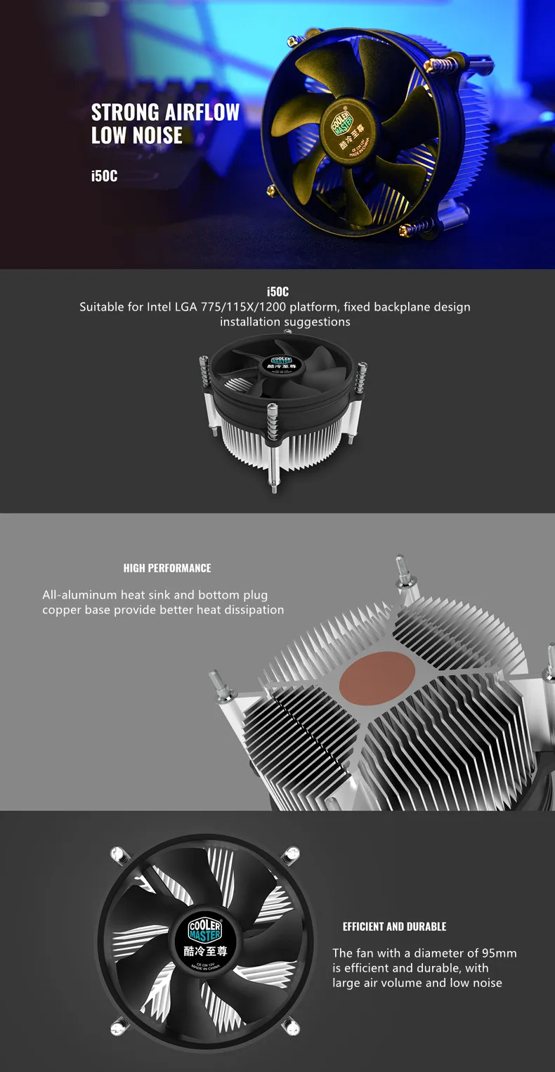 Comprar Enfriador Master i50 HTPC MINI para CPU, radiador silencioso de 95mm para Intel LGA 1150, 1151, 1155, 1200, para refrigeración AIO y M-ATX