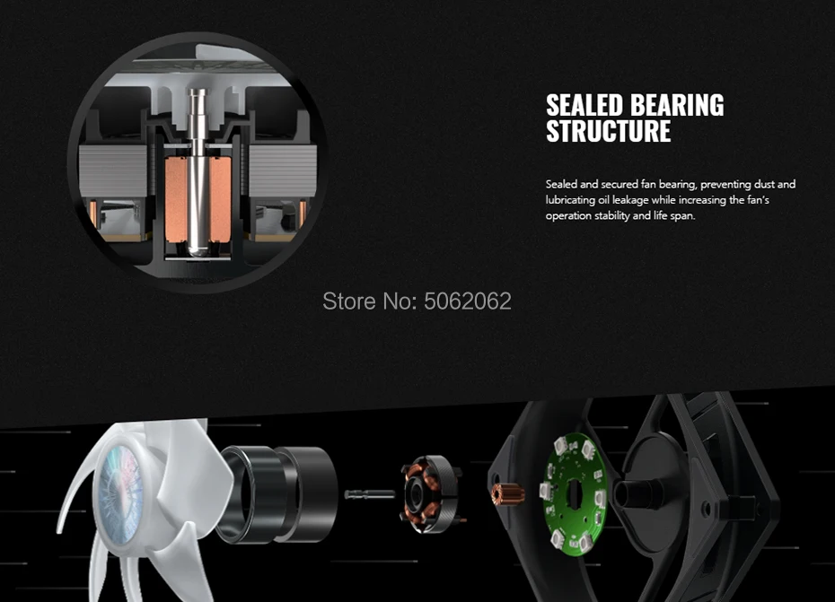 《 Estructura de rodamiento sellada 》-Cojinete de ventilador sellado y asegurado, evitando fugas de polvo y aceite lubricante al tiempo que aumenta la estabilidad de funcionamiento y la vida útil del ventilador