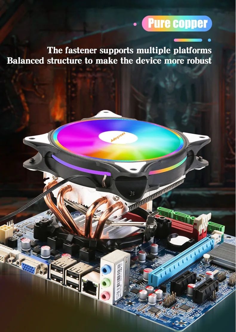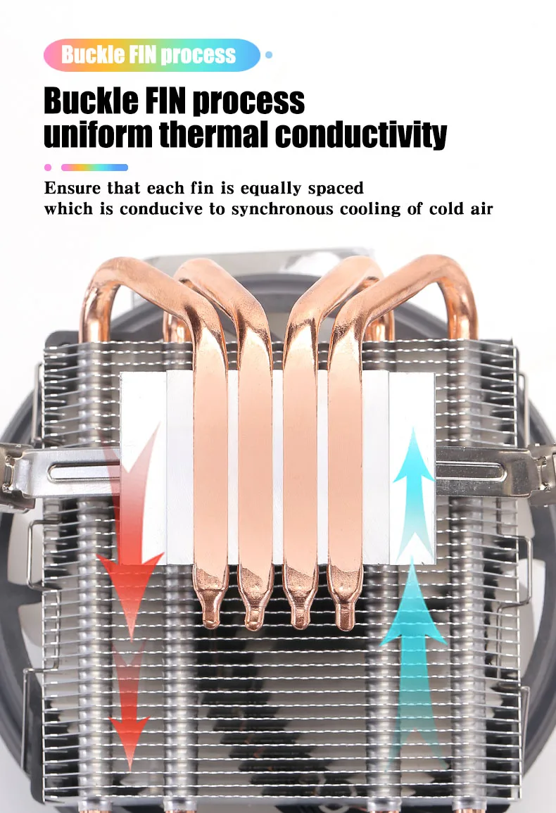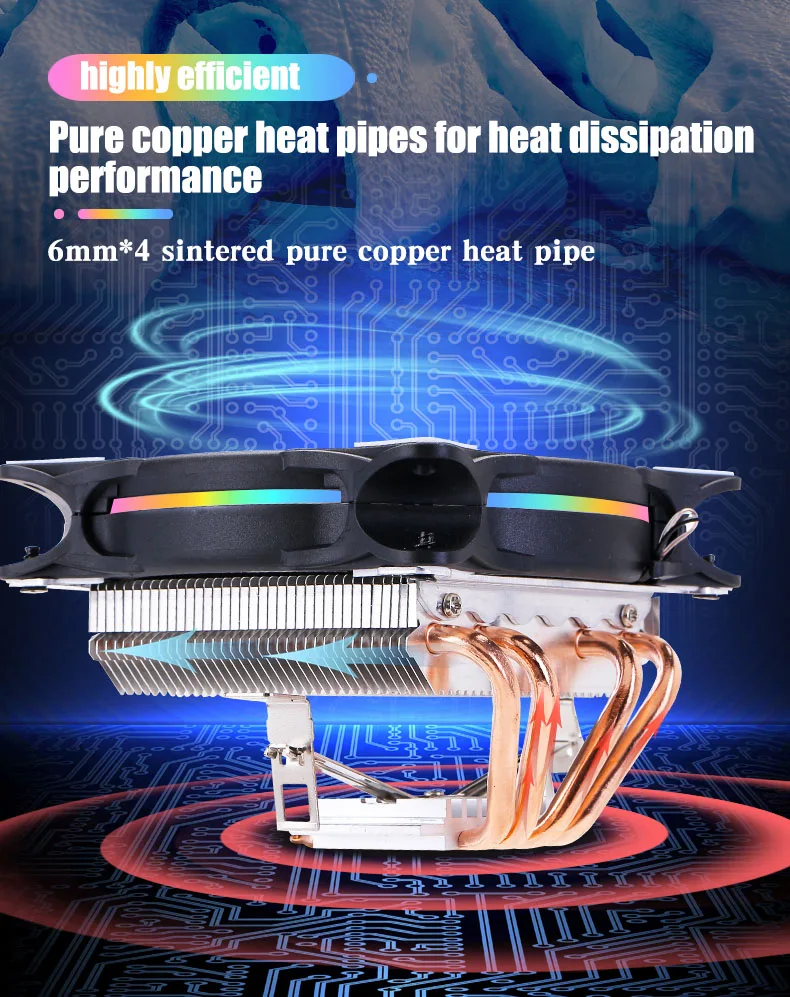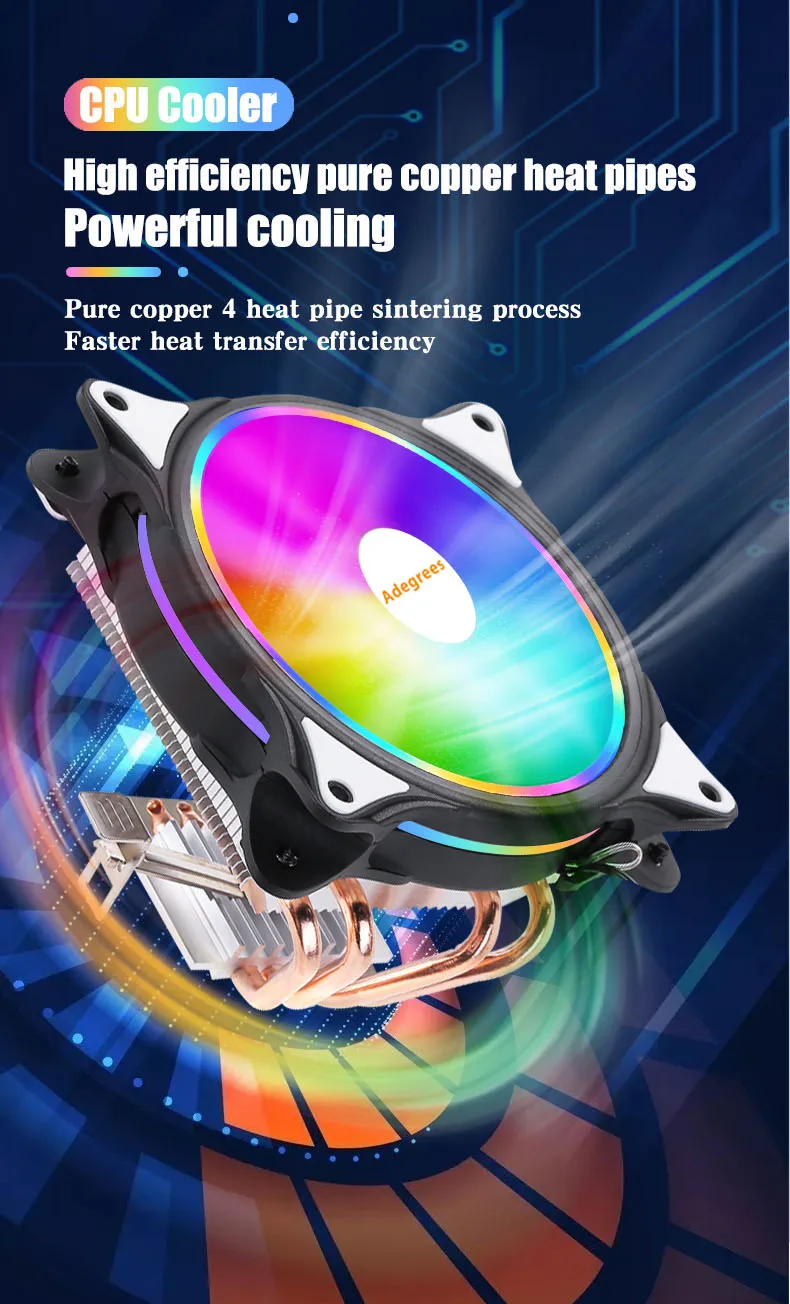 Enfriador refrigerado por aire de CPU de 120MM, 4 tubos de calor, ventilador silencioso de refrigeración de CPU para Intel LGA 2011 1700 1150 1151 1155 AMD AM3 AM4 AM5 Ventilador