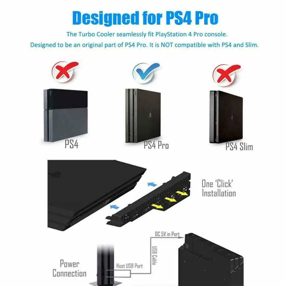 Mantenga su juego funcionando sin problemas con este ventilador de refrigeración PS4 Pro.La potente consola PS4 Pro funciona más caliente que PS4 y PS4 Slim, lo que hace que este enfriador turbo sea una compra imprescindible para cualquier jugador de PS4 Pro.Diseñado para ser económico, ecológico y fácil de instalar, y funciona a temperaturas de funcionamiento superiores a 38 °C.