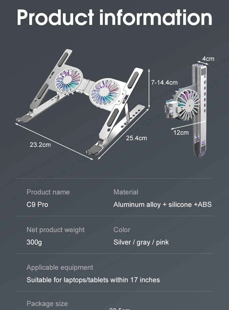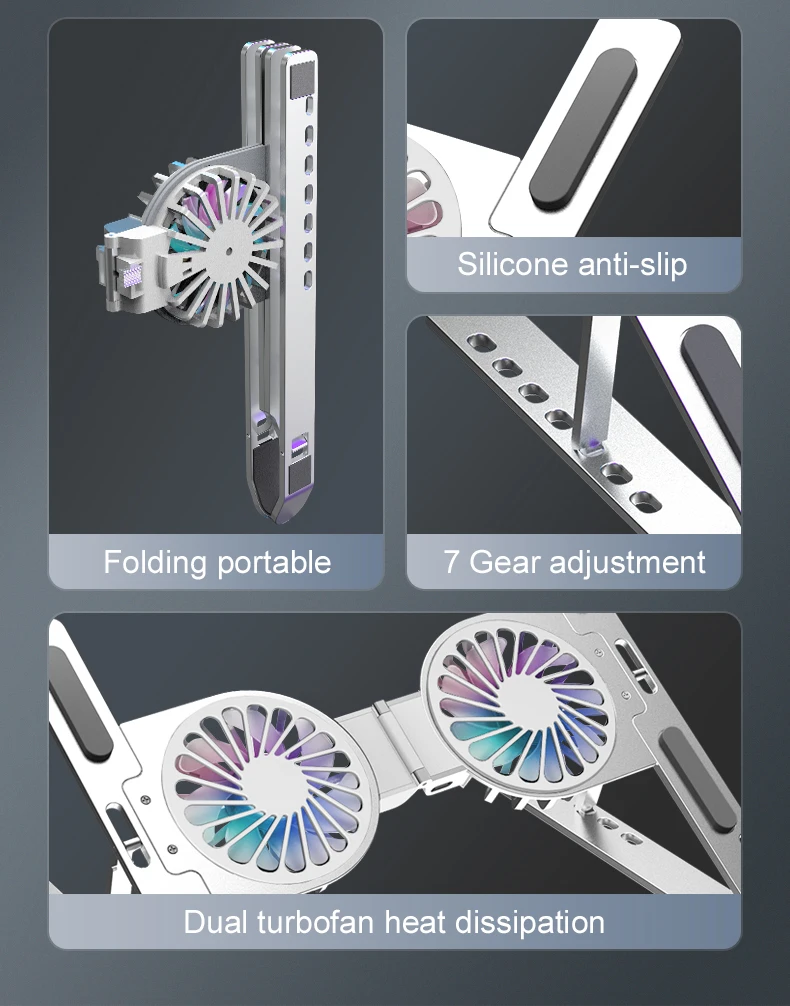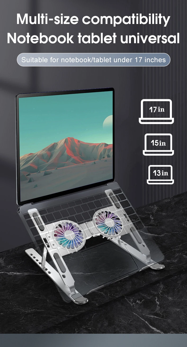 Comprar Enfriador de tableta portátil con soporte, ventilador de enfriamiento rápido de viento fuerte, soporte plegable para computadora portátil para juegos de 17 pulgadas, Notebook