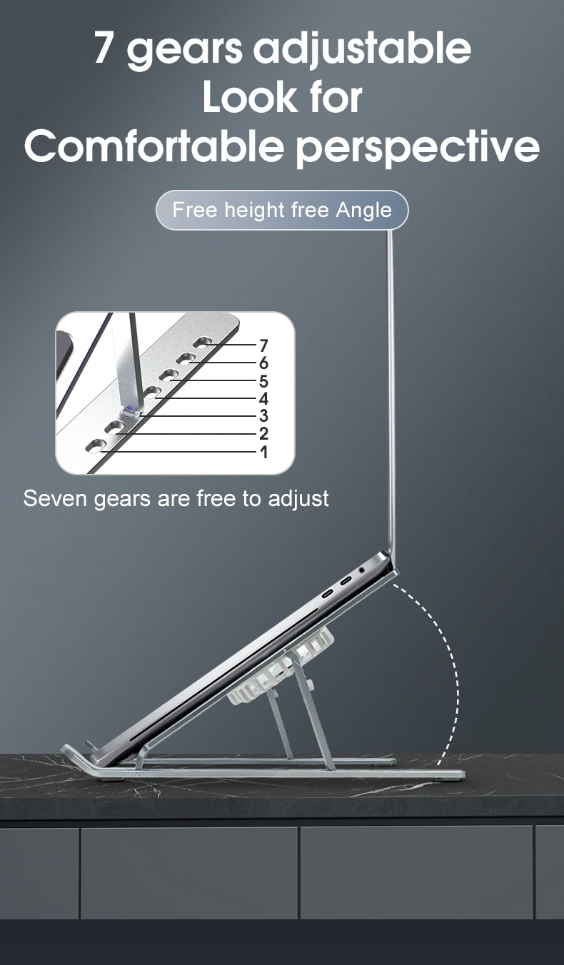 -- Mantenga su portátil fresco: Hay agujeros en la parte superior del soporte del ordenador para aumentar el flujo de aire y proporcionar una buena ventilación, evitando que el portátil se sobrecaliente y reduciendo el ruido del ventilador. ¡Le permite trabajar de manera más eficiente con un ordenador en funcionamiento!