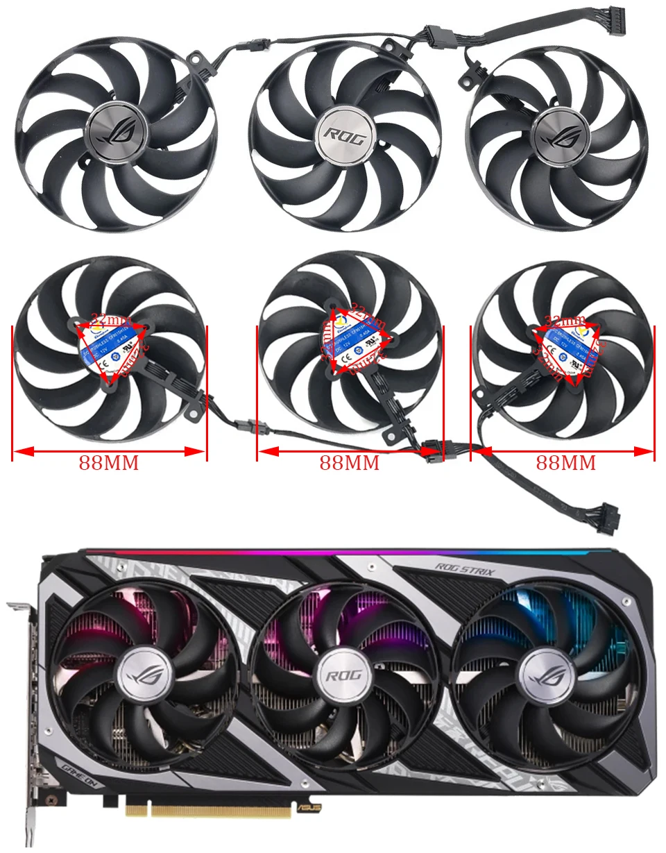 Comprar Enfriador de tarjeta de vídeo para ASUS ROG Strix GeForce RTX 3050, ventilador de refrigeración, 8GB, 3060, 12GB, nuevo