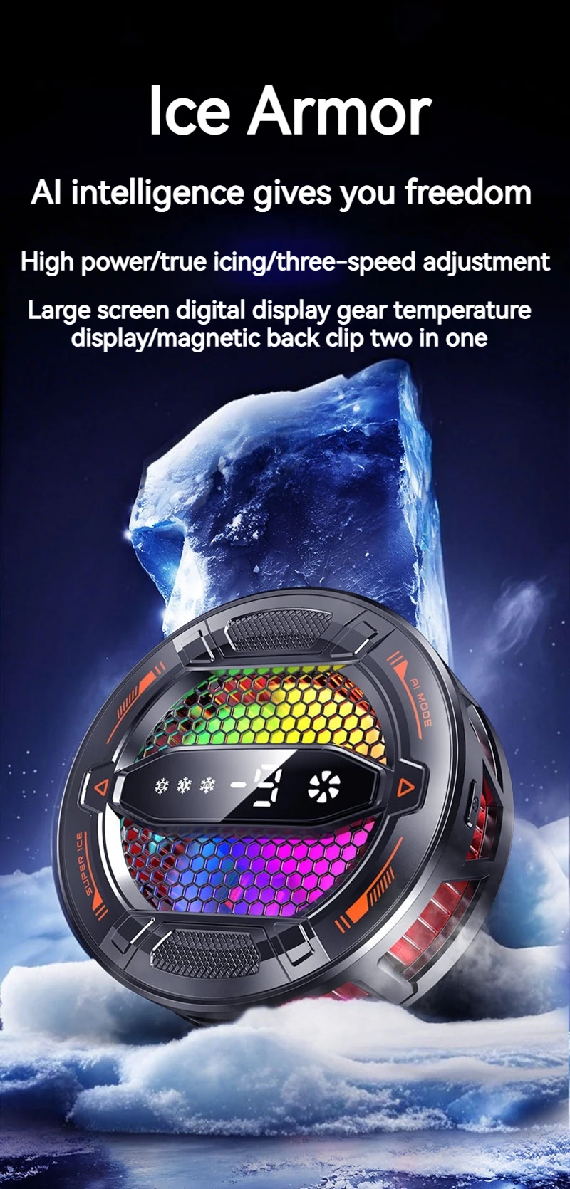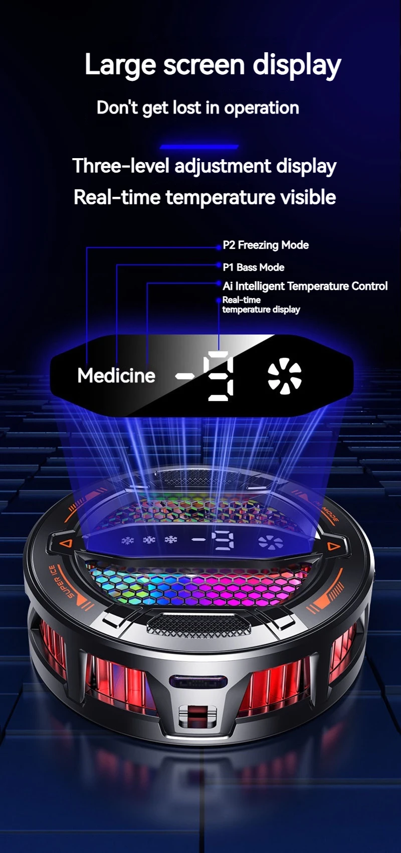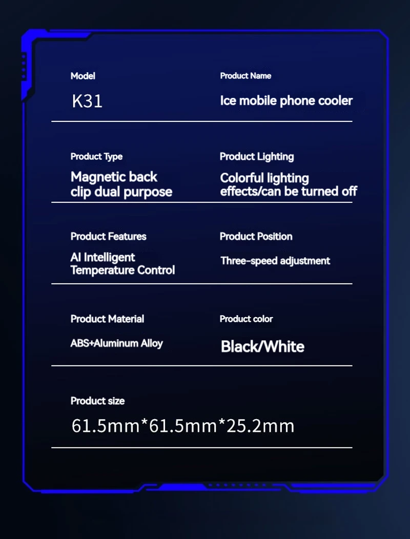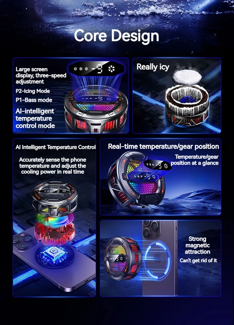 Enfriador de teléfono semiconductor K31 con pantalla Digital Control de temperatura inteligente Luces RGB Compatible con todos los teléfonos y tabletas