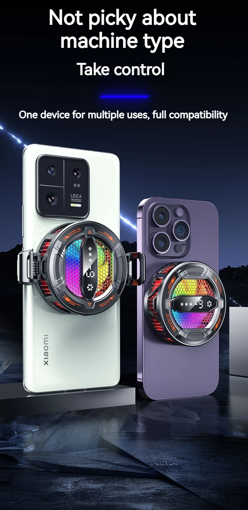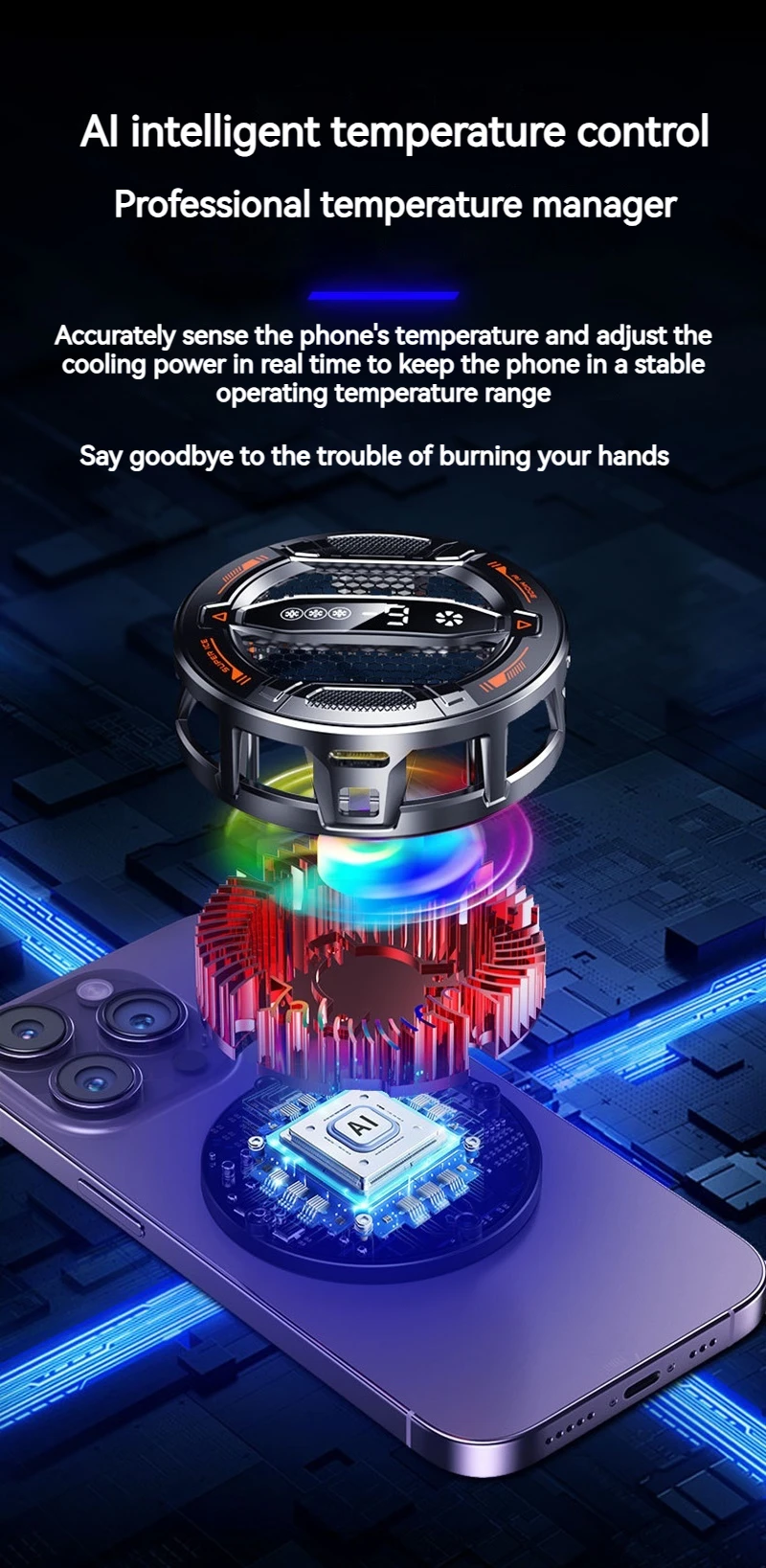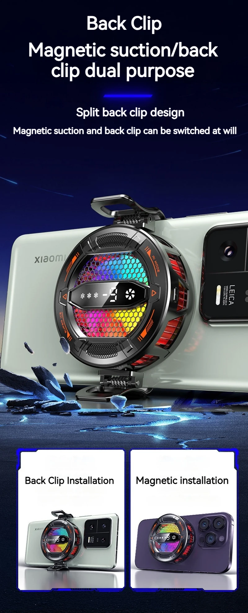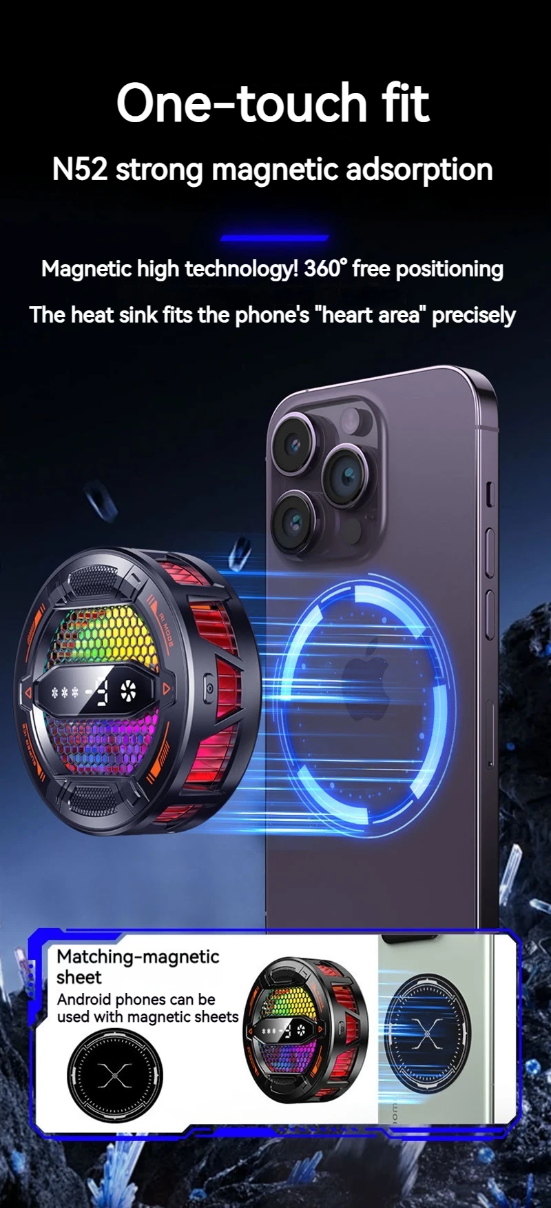 Enfriador de teléfono semiconductor K31 con pantalla Digital Control de temperatura inteligente Luces RGB Compatible con todos los teléfonos y tabletas