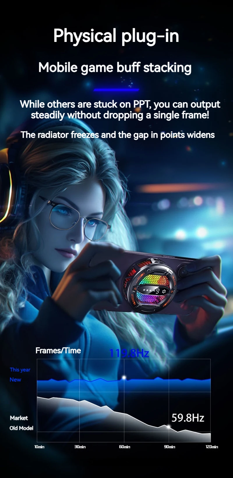 Me gustó mucho el enfriador; llegó en 10 días. Después de probarlo, puedo decir que con él el teléfono no se calienta más de 34-35 grados Celsius, mientras que sin él puede alcanzar 45-47 grados. Sus modos son más propensos a controlar simplemente la velocidad de enfriamiento del enfriador, en lugar del poder de enfriamiento. También quiero agregar que la malla alrededor puede calentarse y el enfriador es bastante débil para mantenerlo fresco. En general, me gustó el producto.