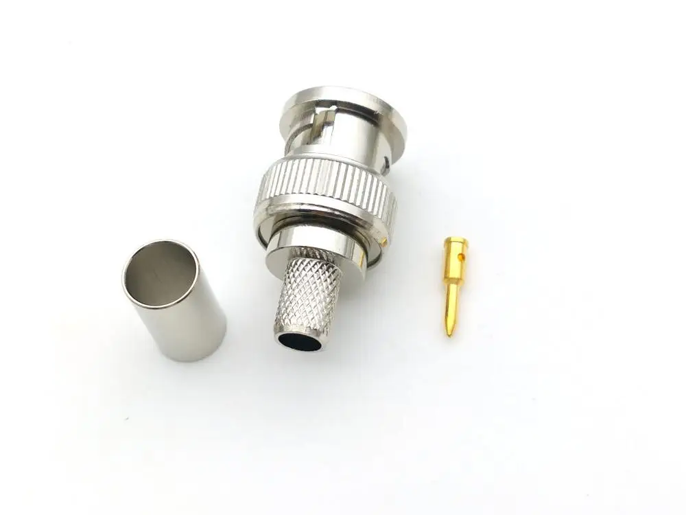 Conector BNC macho engarzado para RG5 RG6 5D-FB LMR300 Cable adaptador coaxial RF terminales de cable