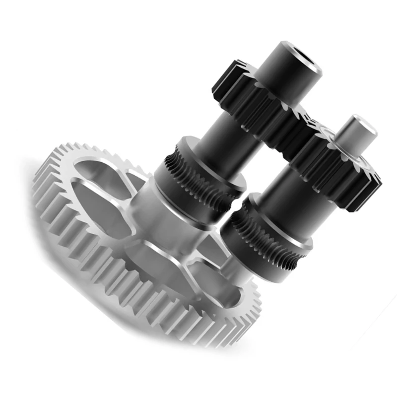 Hecho de acero inoxidable y acero moldeado recubierto de Nanos, este juego de engranajes cuenta con engranajes de alta relación de reducción, que ofrecen un mayor par de extrusión y una resistencia al desgaste excepcional.