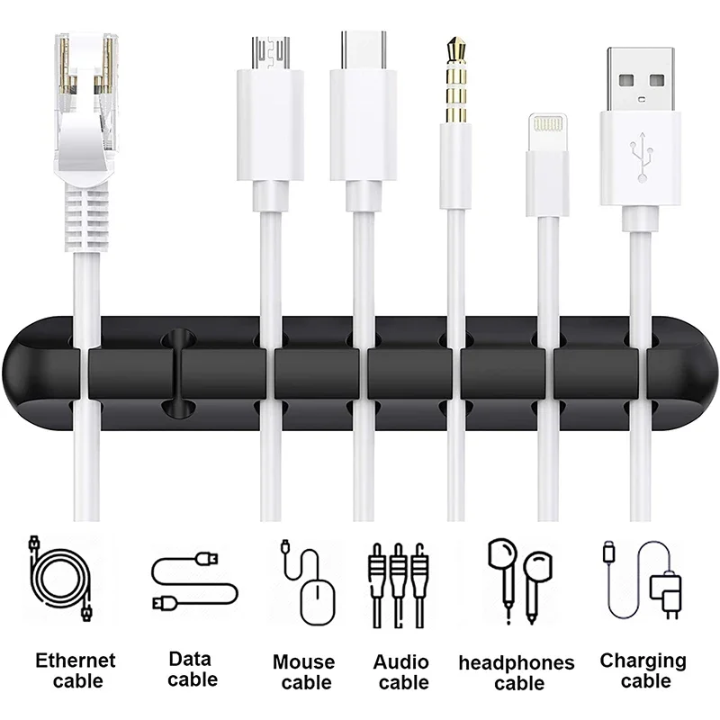 Comprar Enrollador de Cable de silicona adhesivo, 3/5/7 Clips, Cable de escritorio envuelto, soporte de Cable, juego de escritorio, organizador de mesa, suministros de oficina
