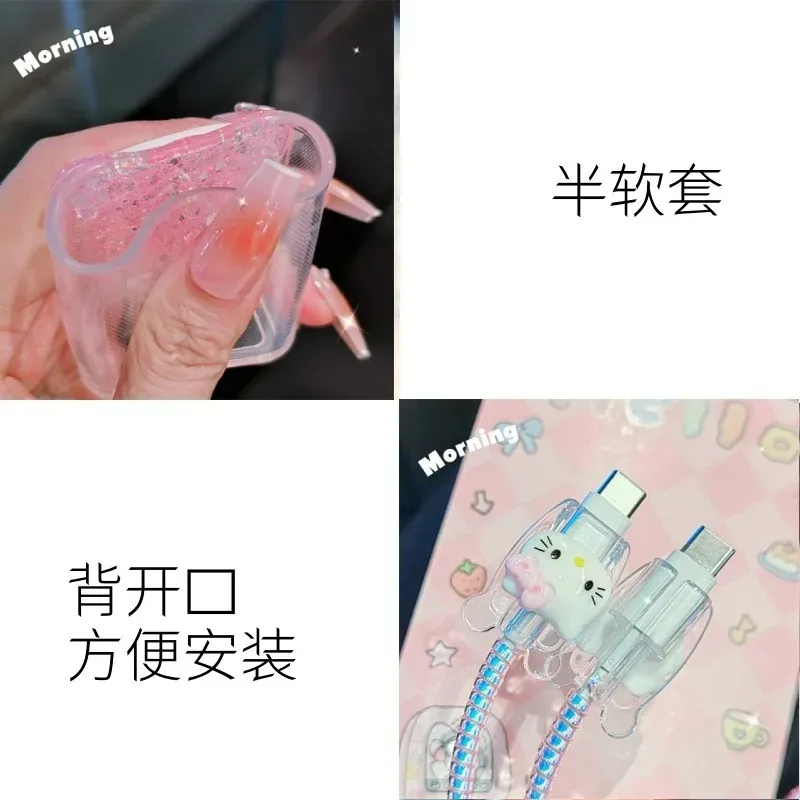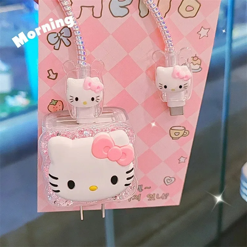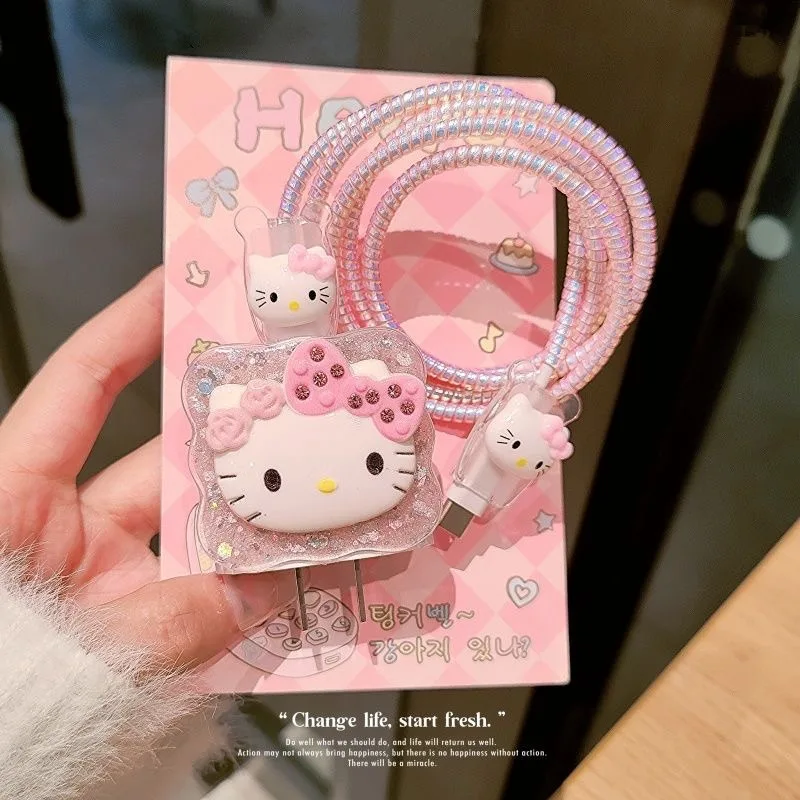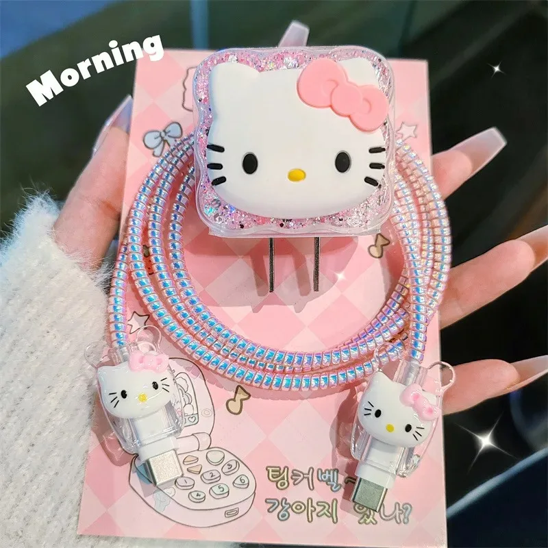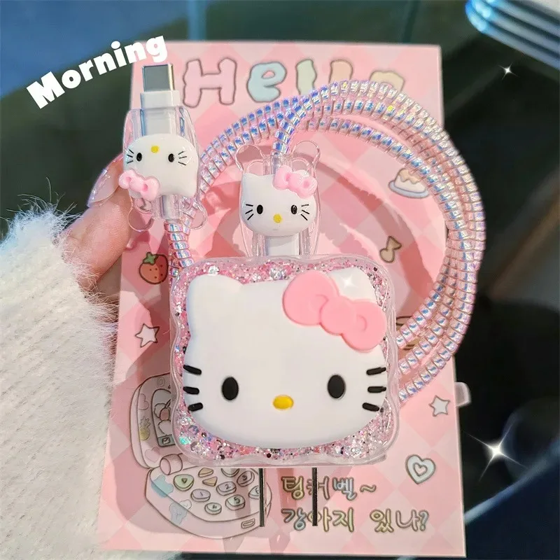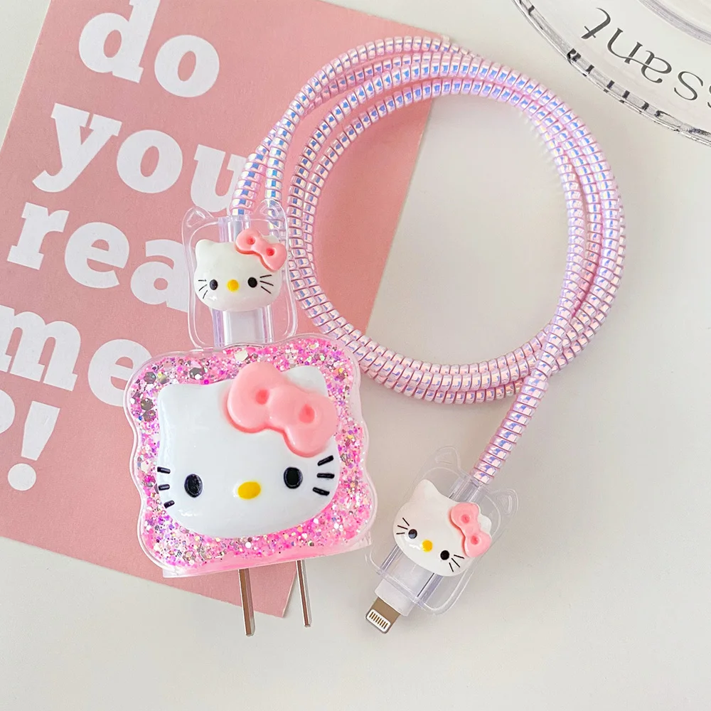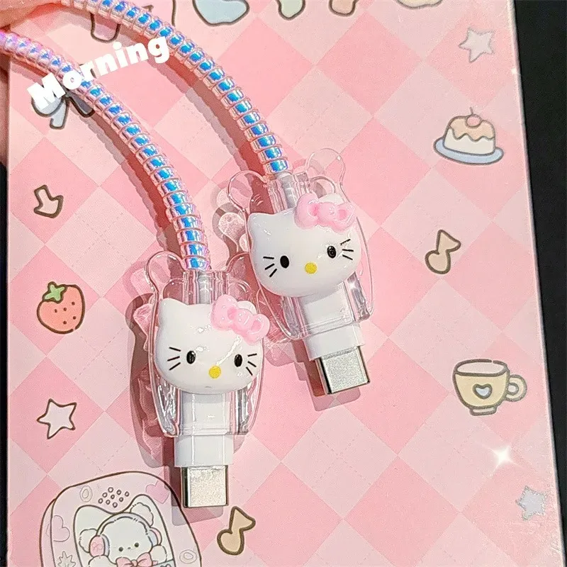 Enrollador de cables de dibujos animados, funda protectora para cargador de teléfono móvil para Apple IPhone 18/20W, protectores de cables enrolladores de cables Hello Kitty
