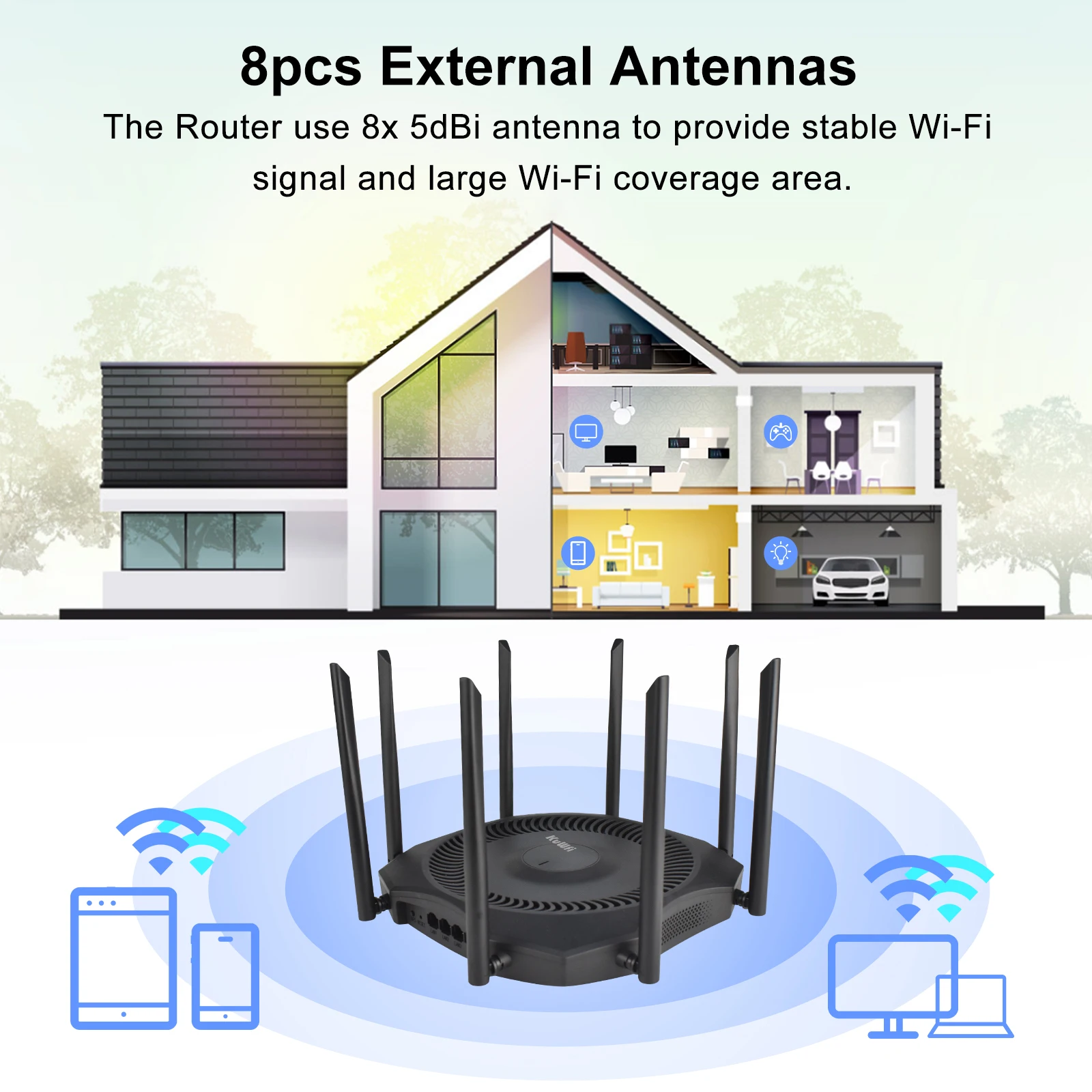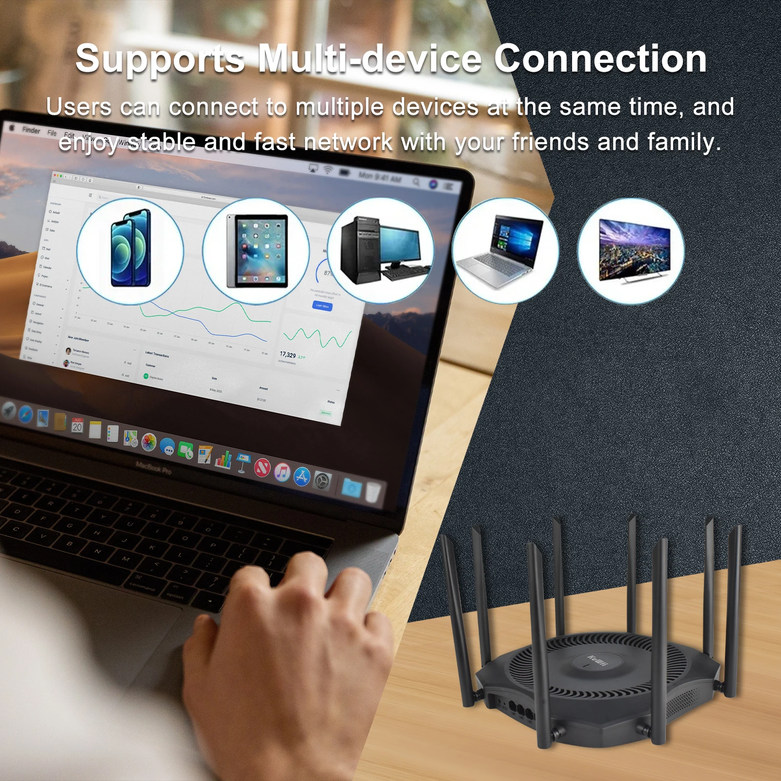 Este enrutador admite 64 usuarios o dispositivos para conectarse a la señal WiFi al mismo tiempo.Puede elegir diferentes frecuencias de señales WiFi para diferentes dispositivos, lo que puede mejorar el uso del enrutador.