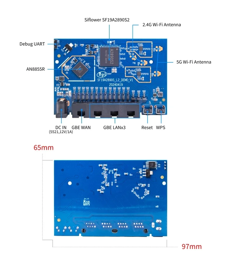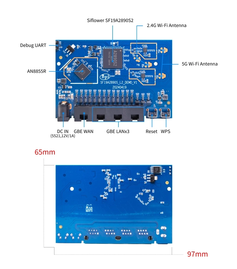 El enrutador Banana Pi BPI-Wifi5 utiliza diseño Siflower SF19A2890S2.Es un enrutador inalámbrico de alto rendimiento para pequeñas y microempresas, hogares y otros entornos de red.