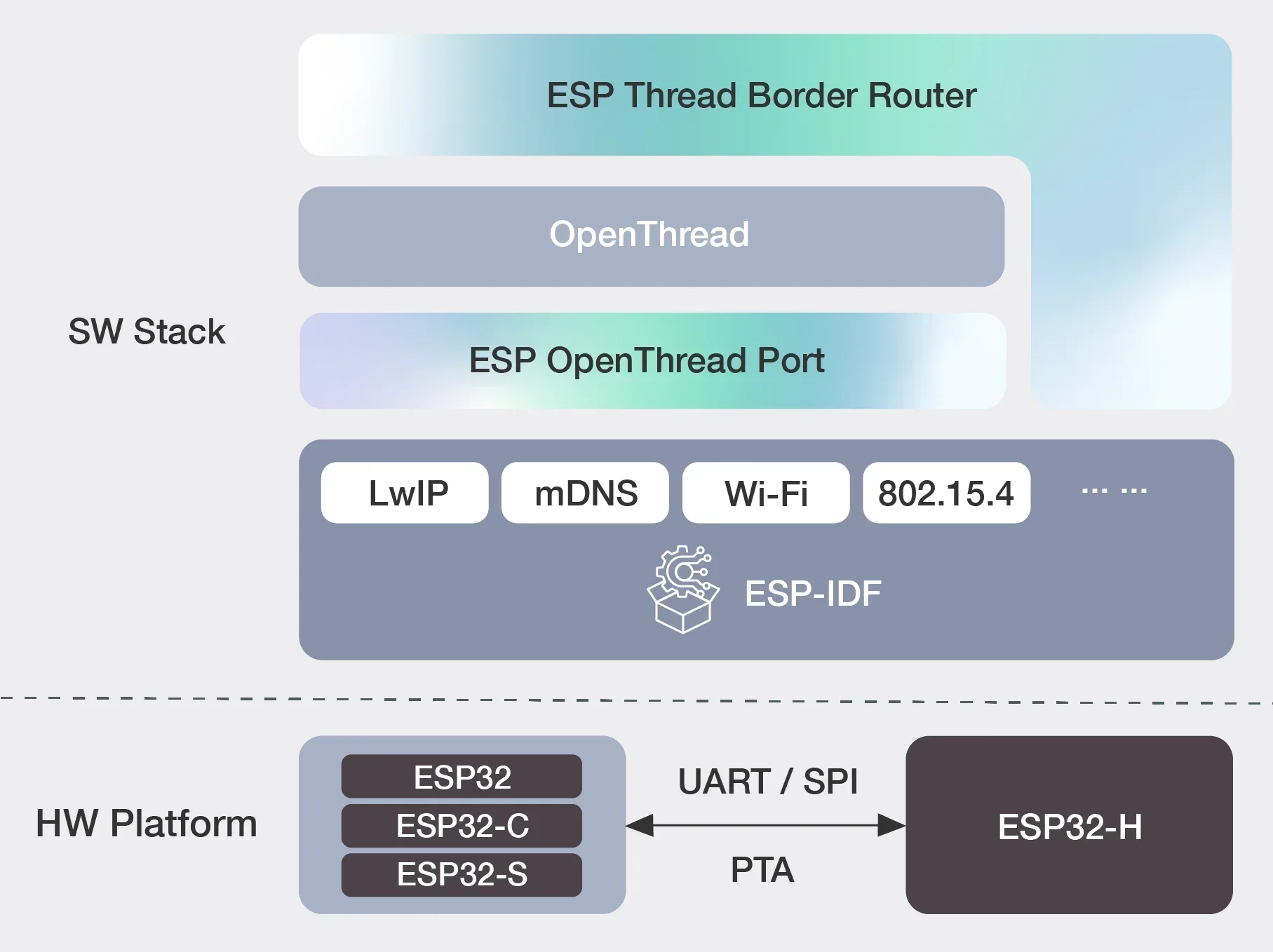 La solución Espressif Thread Border Router se basa en la combinación del Wi-Fi de Espressif y los SoC 802.15.4, construidos en ely de código abiertopila.