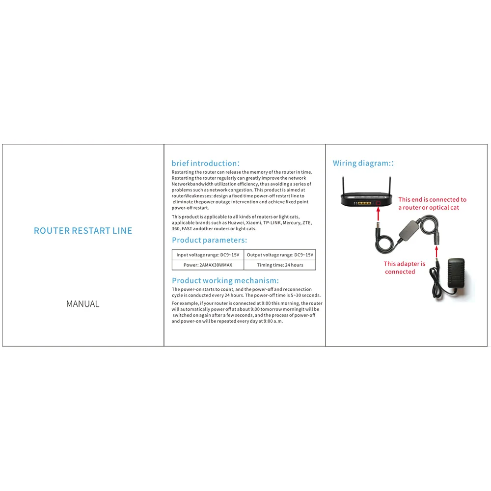 2 Con el objetivo de la debilidad del enrutador, este producto diseña una línea de apagado y reinicio temporizado, lo que ahorra la intervención del apagado y logra un apagado y reinicio de punto fijo.