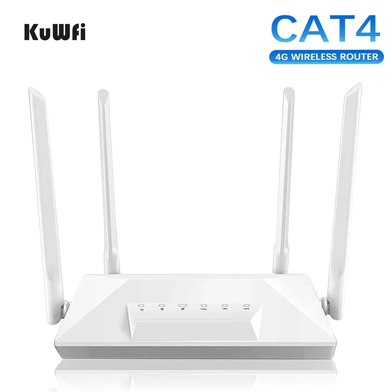 Comprar Enrutador inalámbrico KuWFi 4G LTE, enrutador WiFi CAT4 de 300Mbps, módem de punto de acceso móvil con ranura para tarjeta SIM, puerto LAN Rj45, 4 antenas externas