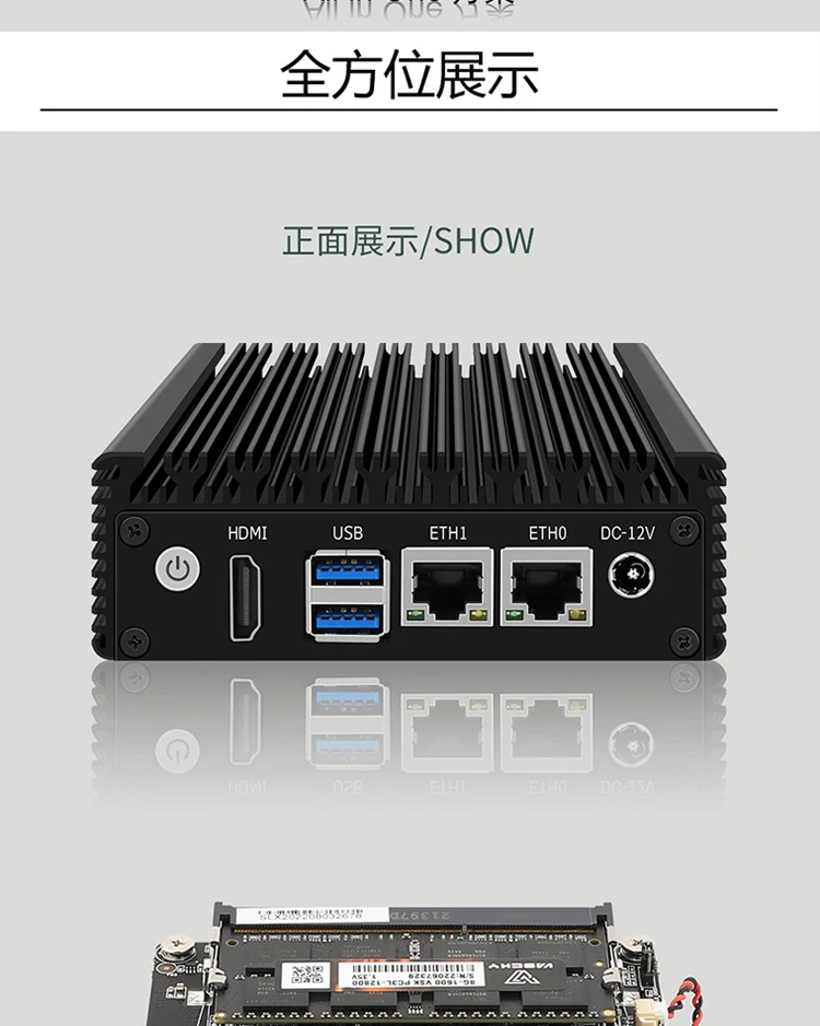Lo compré como enrutador para el hogar. Hizo un mocking agradable del sistema operativo pfsense preinstalado. Antes de encenderlo, lo desmonté y resultó que el SSD estaba arruinado, así que lo arreglé. Fuente de alimentación completa de noche a noche. Es bueno que fuera 12V de la computadora portátil antigua. Se pone un poco caliente, pero creo que lo resistirá. El vendedor lo reemplazó con la versión con dos puertos HDMI.