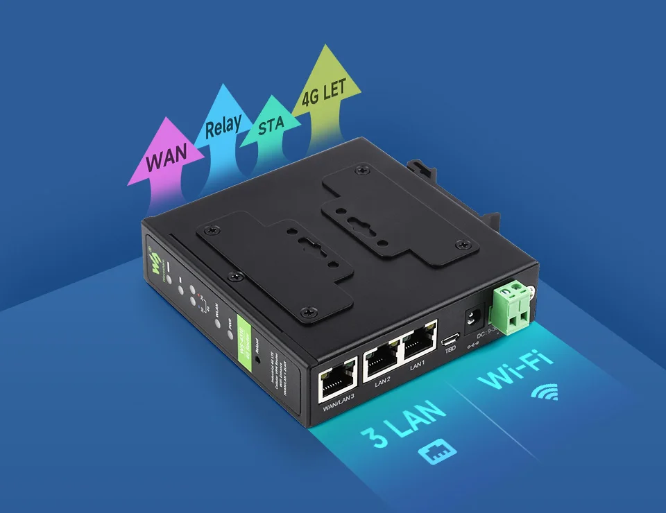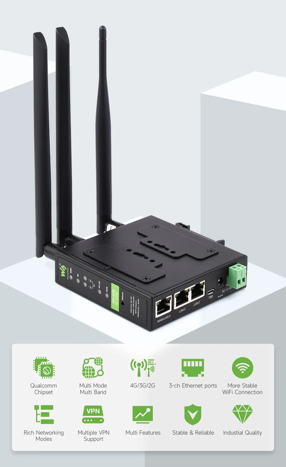 Comprar Enrutador industrial Waveshare 4G LTE, múltiples protocolos VPN, puertos Ethernet de 3 canales, doble calidad, enrutador celular. Enrutador Sim dual 4G