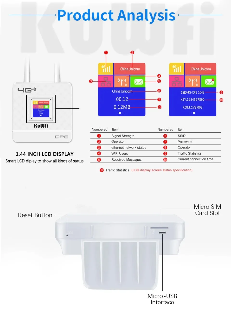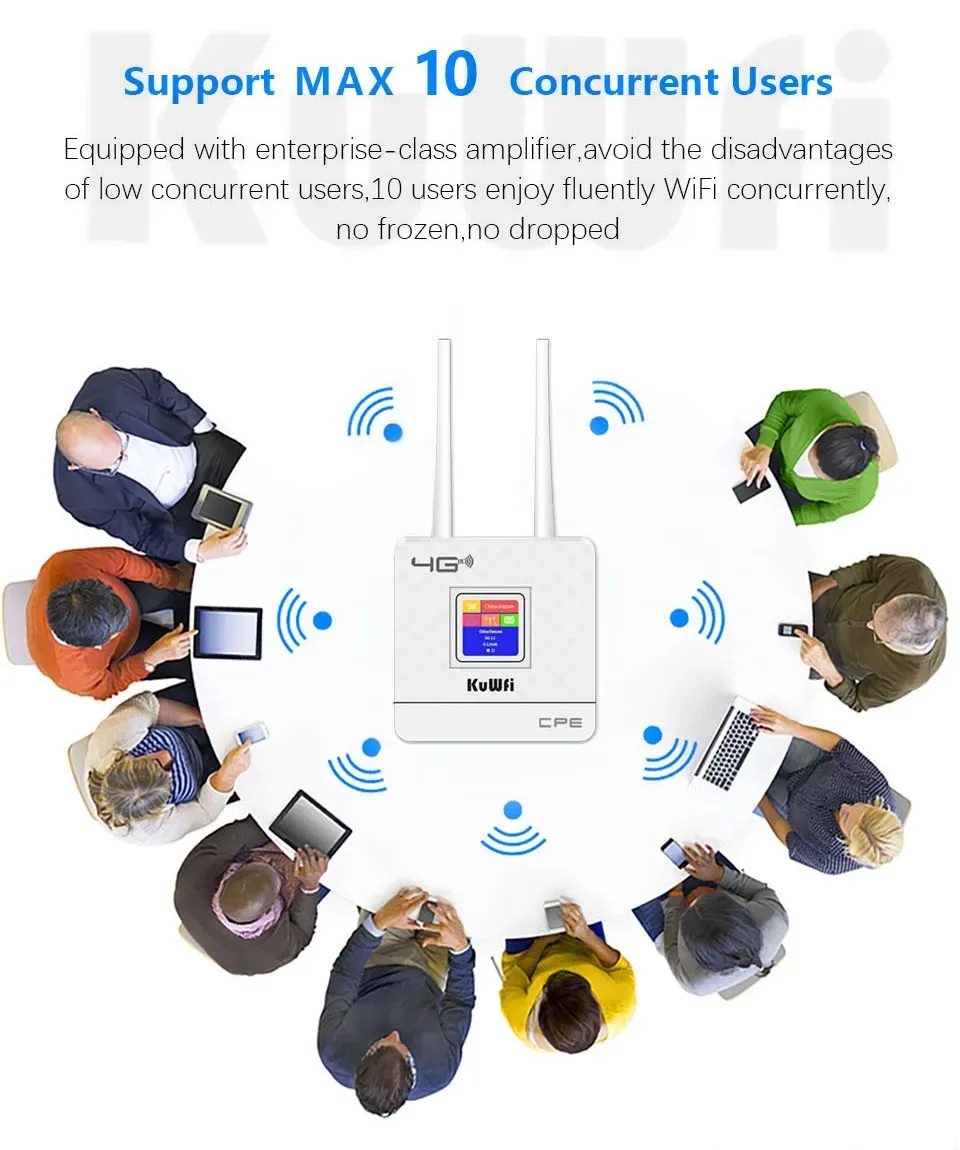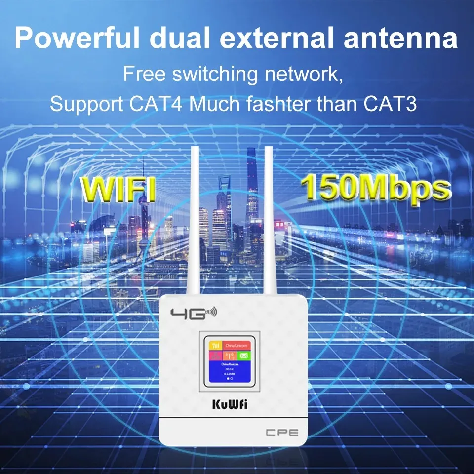 Comprar Enrutador KuWfi 4G LTE CPE, enrutador inalámbrico de 300Mbps, antenas externas duales, módem Wifi 4G con puerto RJ45 y ranura para tarjeta Sim para el hogar