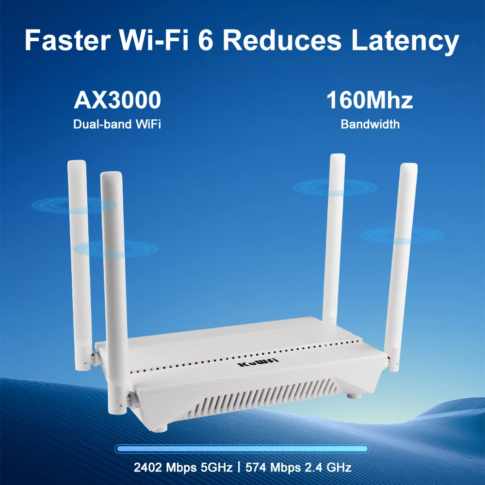 Comprar Enrutador KuWFi AX3000 WiFi6 3000Mbps 2,4 GHz 5GHz enrutador WiFi de doble banda puerto LAN Gigabit WAN modo repetidor AP compatible con malla VPN WPS