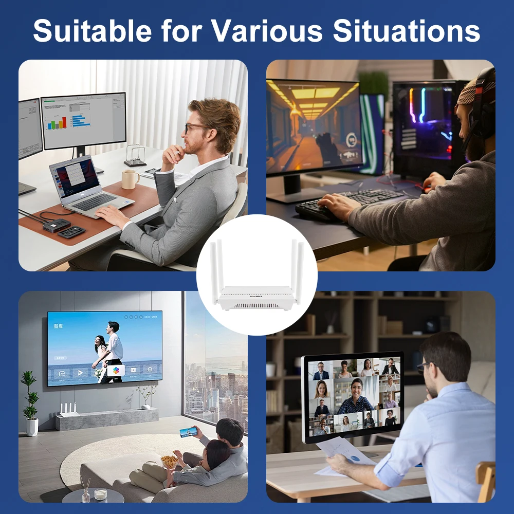 Se puede conectar a dispositivos cableados como teléfonos móviles, televisores y computadoras a través de un cable de red, al mismo tiempo que proporciona señales Wi-Fi inalámbricas para dispositivos inteligentes inalámbricos.Esto resuelve el problema de los dispositivos que requieren una conexión de red.
